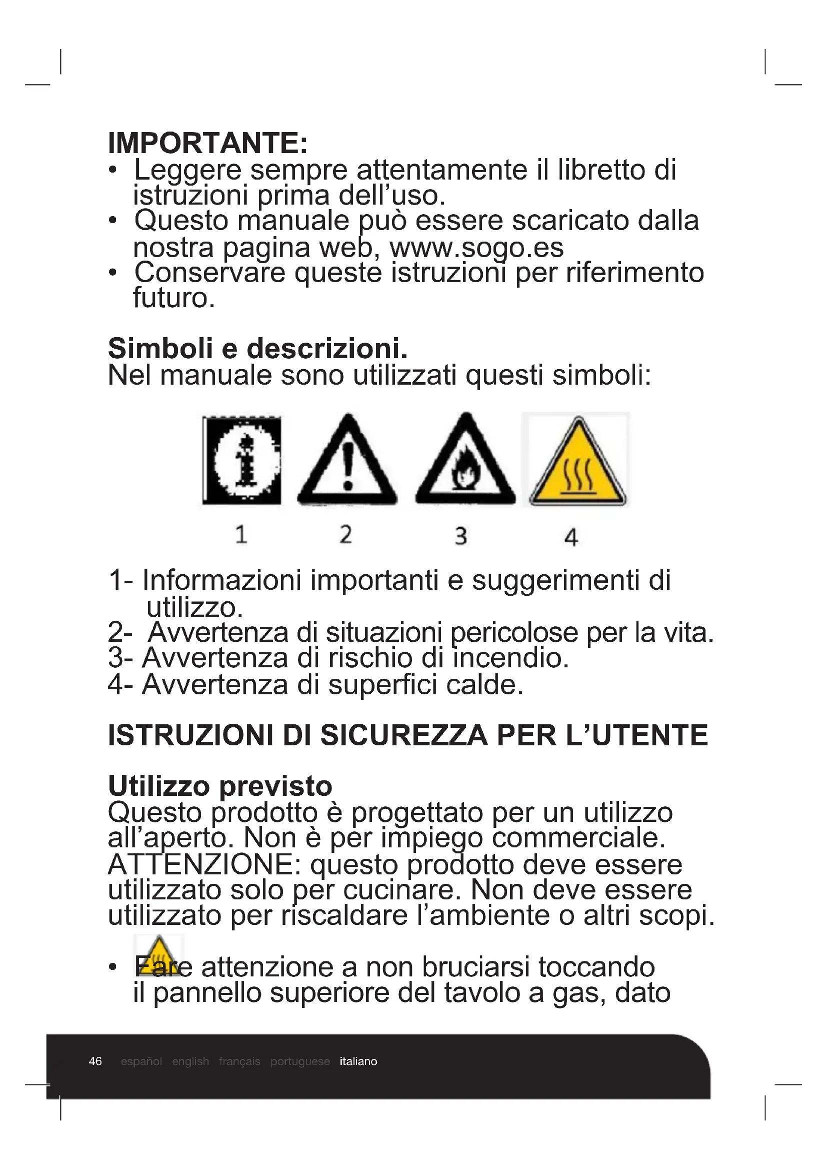 - Questo manuale può essere scaricato dalla nostra pagina web, www.sogo.es