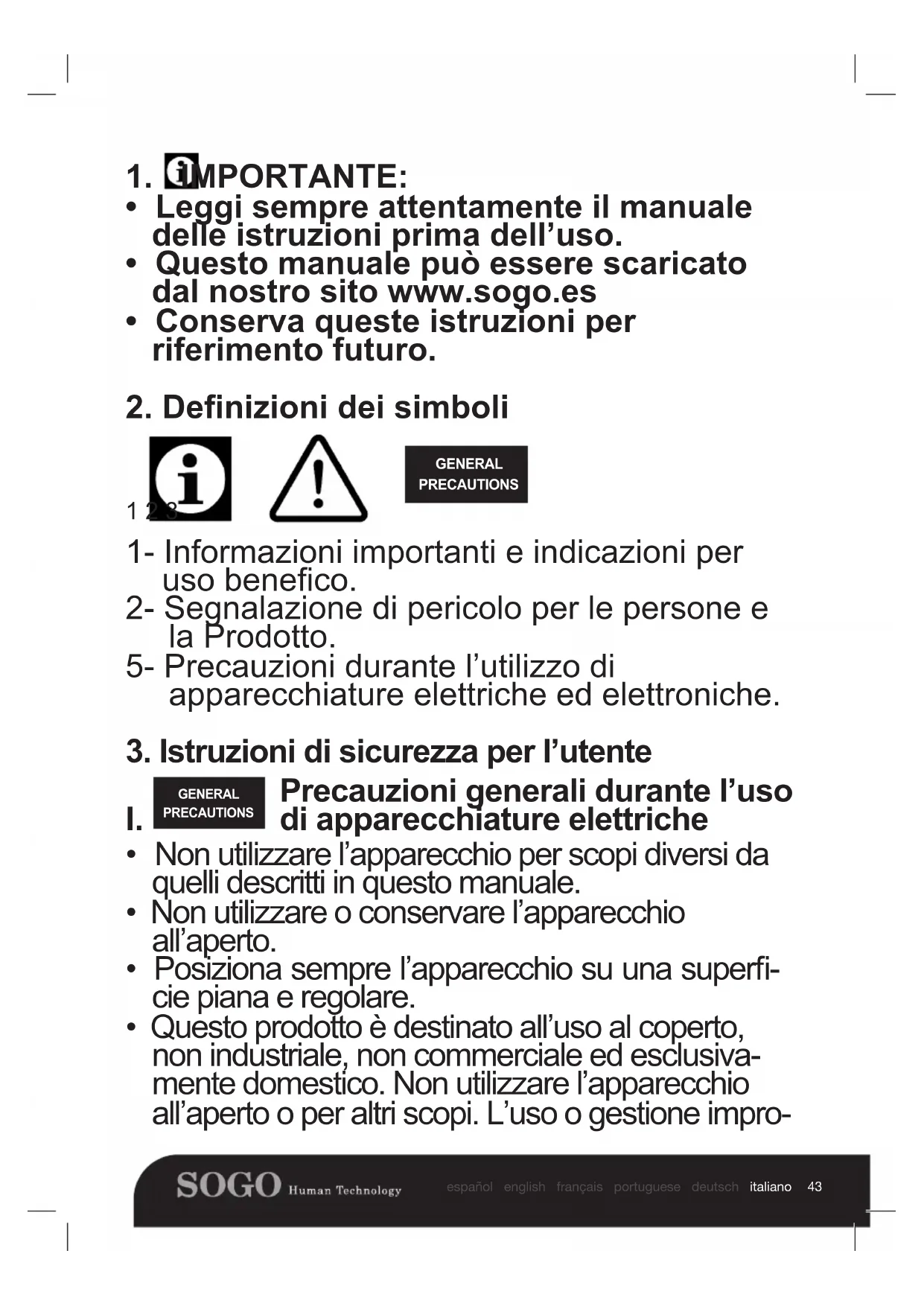 - Questo manuale può essere scaricato dal nostro sito www.sogo.es