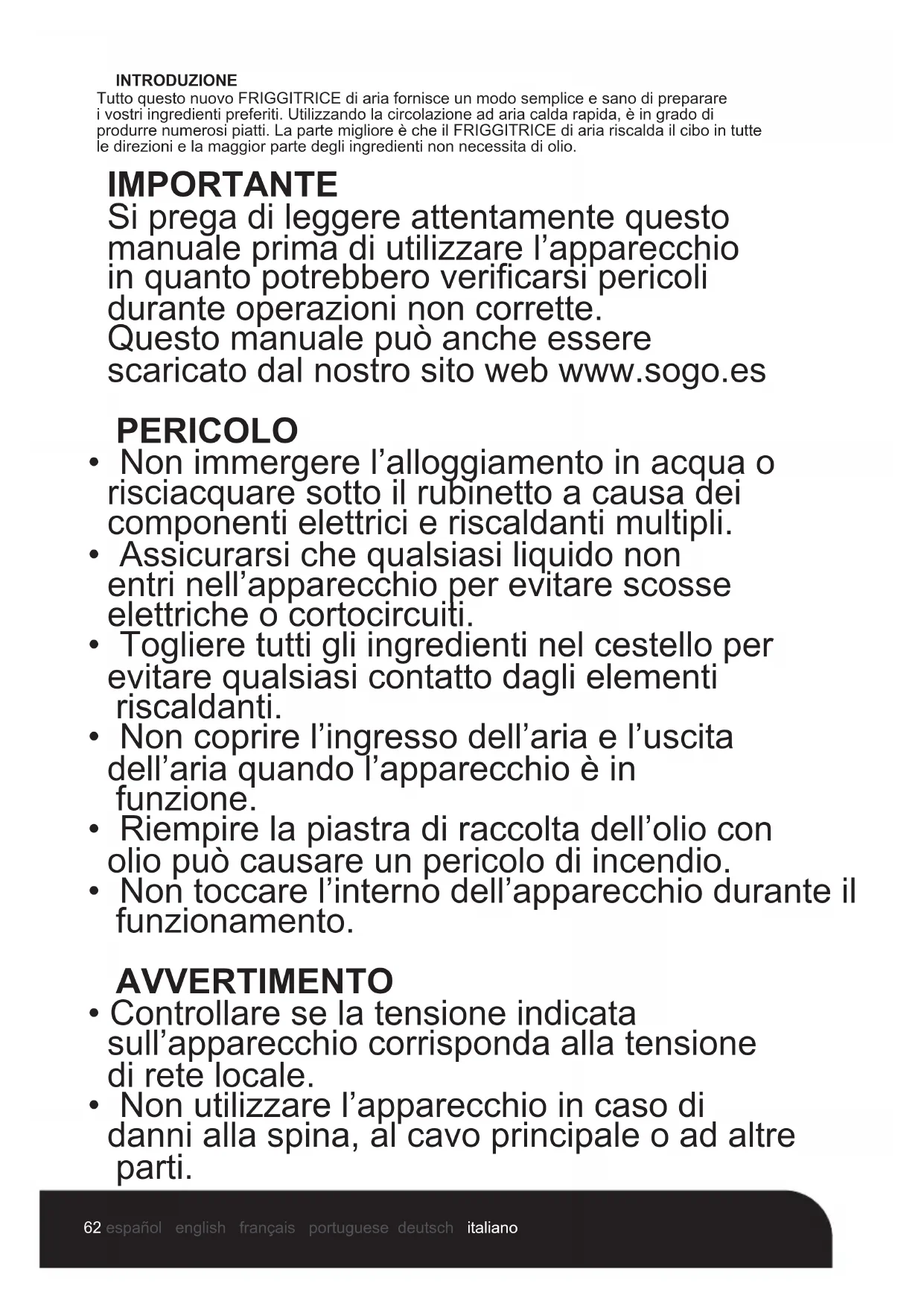 Scarica le istruzioni per il tuo Friggitrice in formato PDF gratuitamente! Trova il tuo manuale SS10465 - Sogo e riprendi in mano il tuo dispositivo elettronico. In questa pagina sono pubblicati tutti i documenti necessari per l'utilizzo del tuo dispositivo. SS10465 del marchio Sogo.