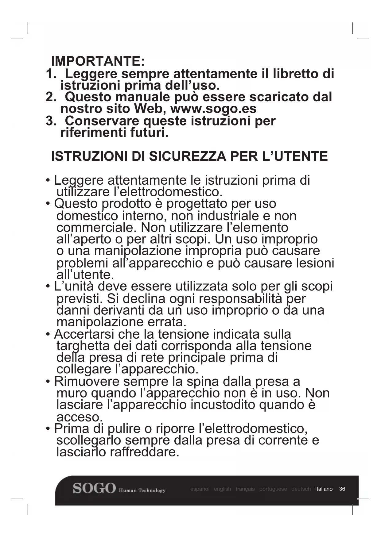 - Prima di pulire o riporre l’elettrodomestico, scollegarlo sempre dalla presa di corrente e lasciarlo rareddare.37 español english français portuguese deutsch italiano