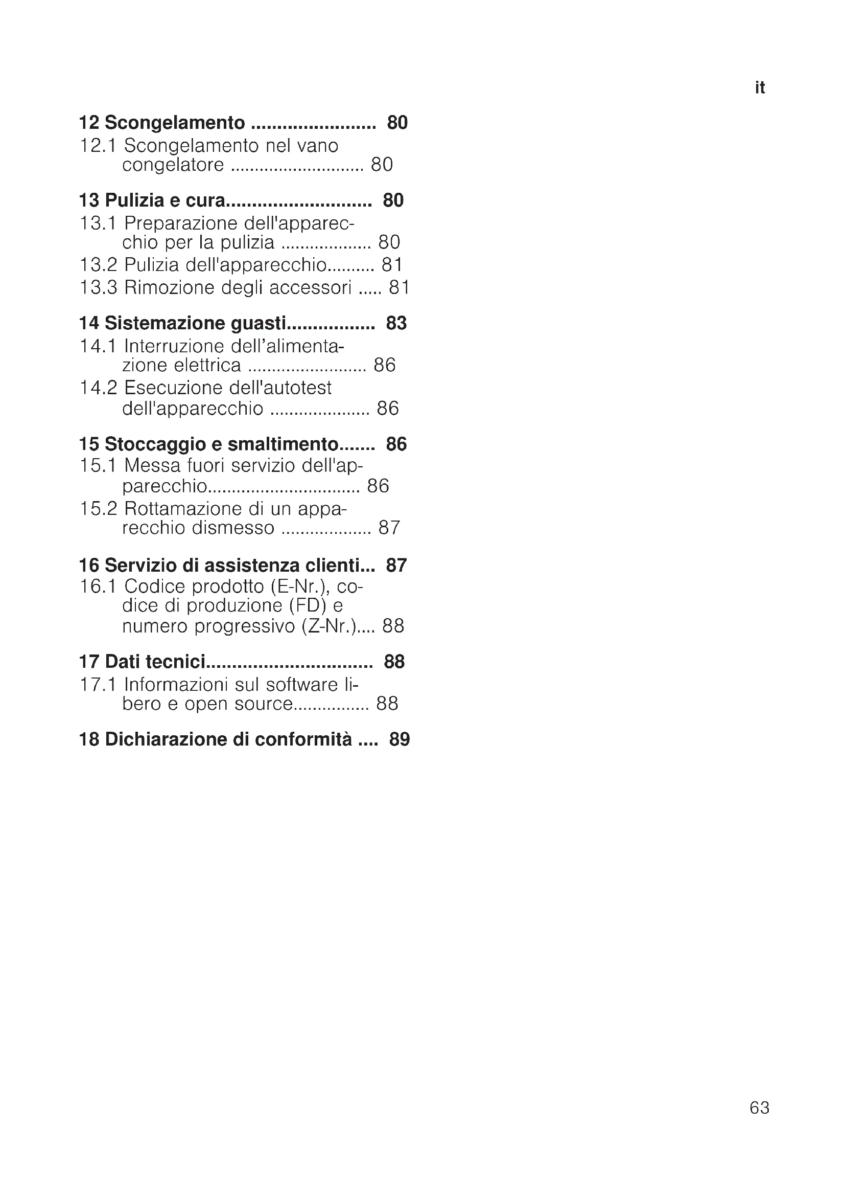 congelatore ............................80 13 Pulizia e cura............................80