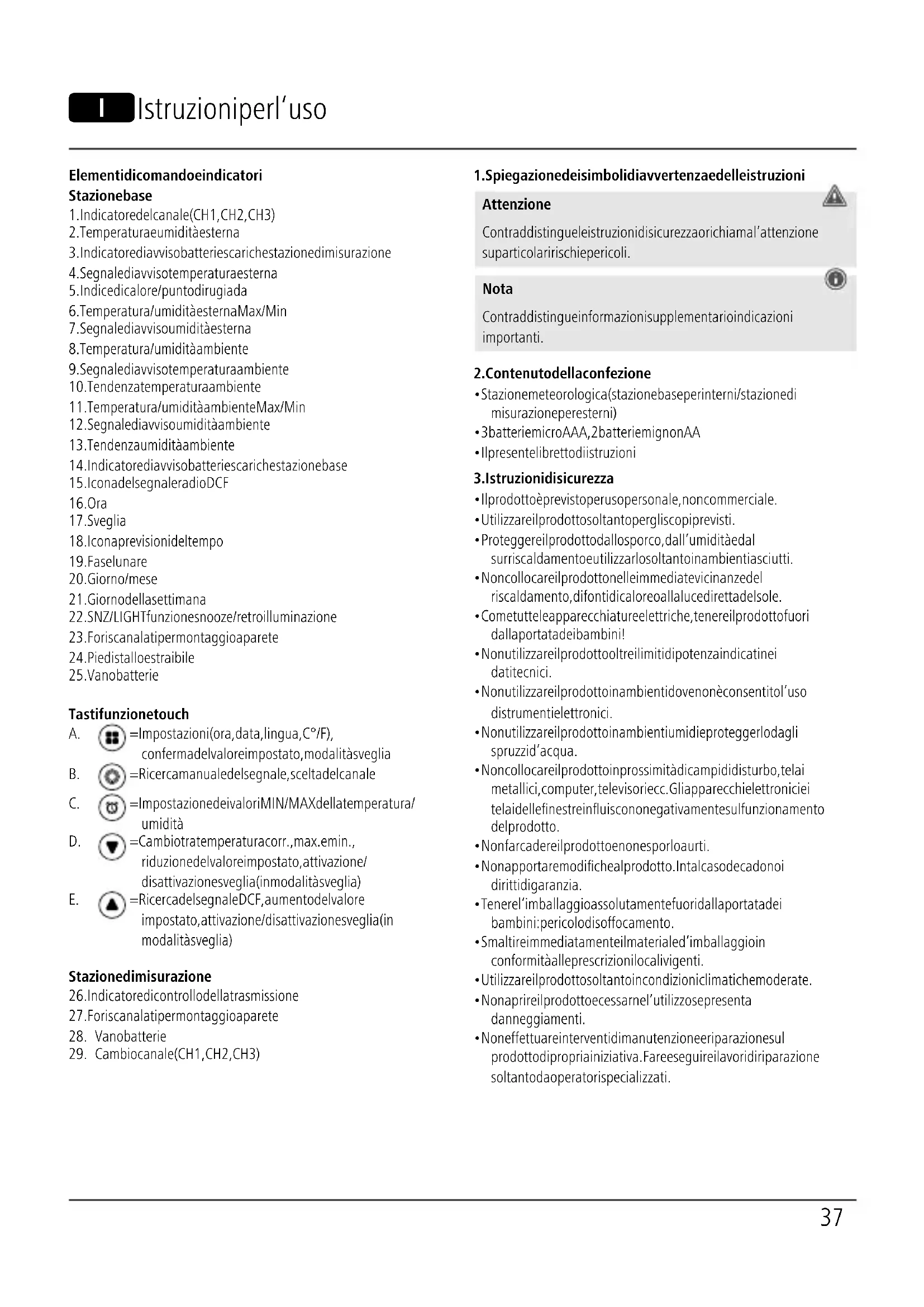 - Il presente libretto di istruzioni