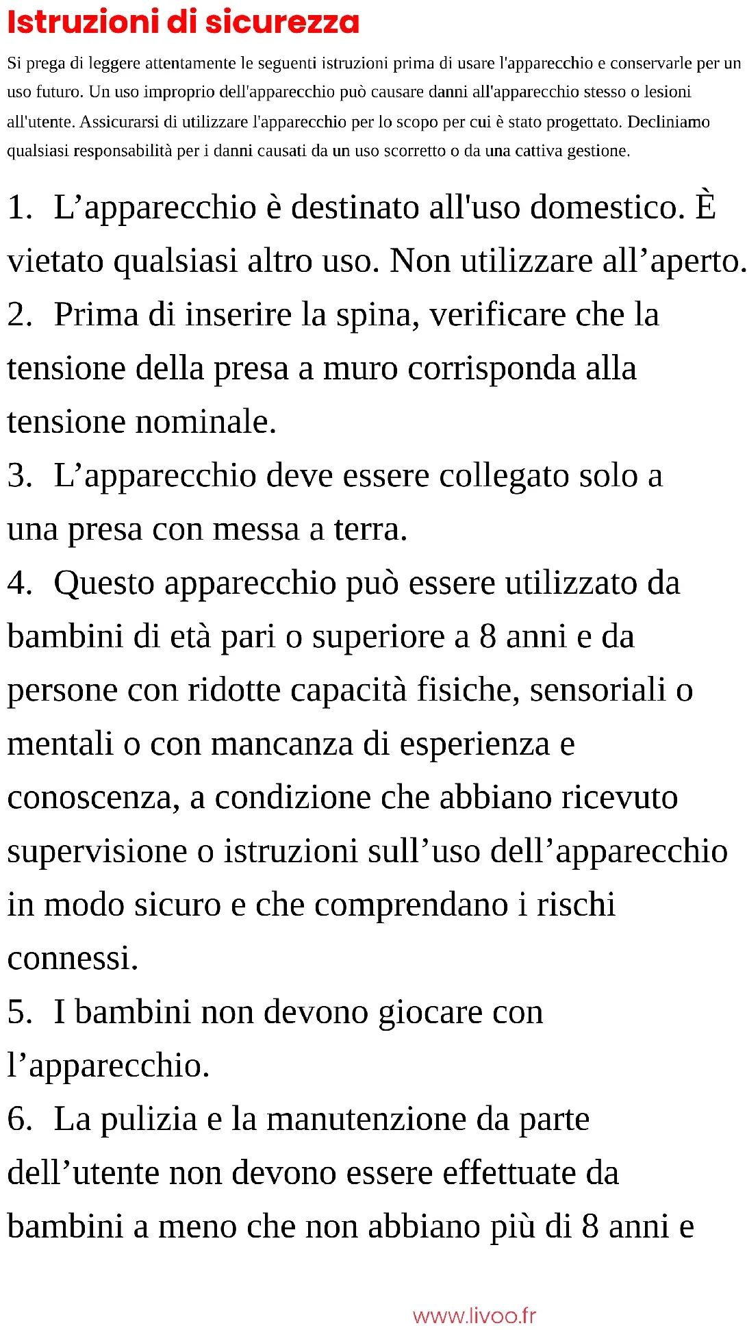 14. Per ridurre il rischio di scosse elettriche, nonwww.livoo.fr