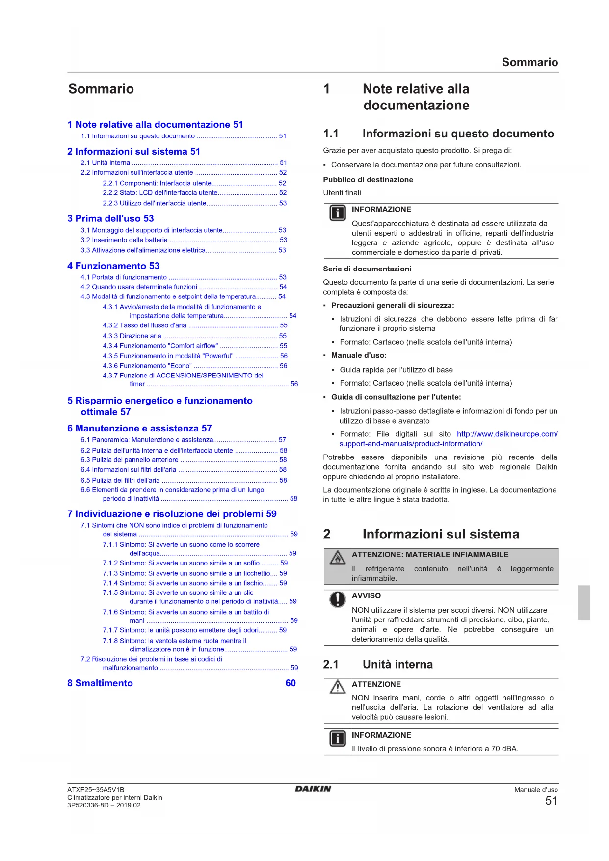 Climatizzatore per interni Daikin 3P520336-8D – 2019.02 Sommario 1 Note relative alla documentazione 51