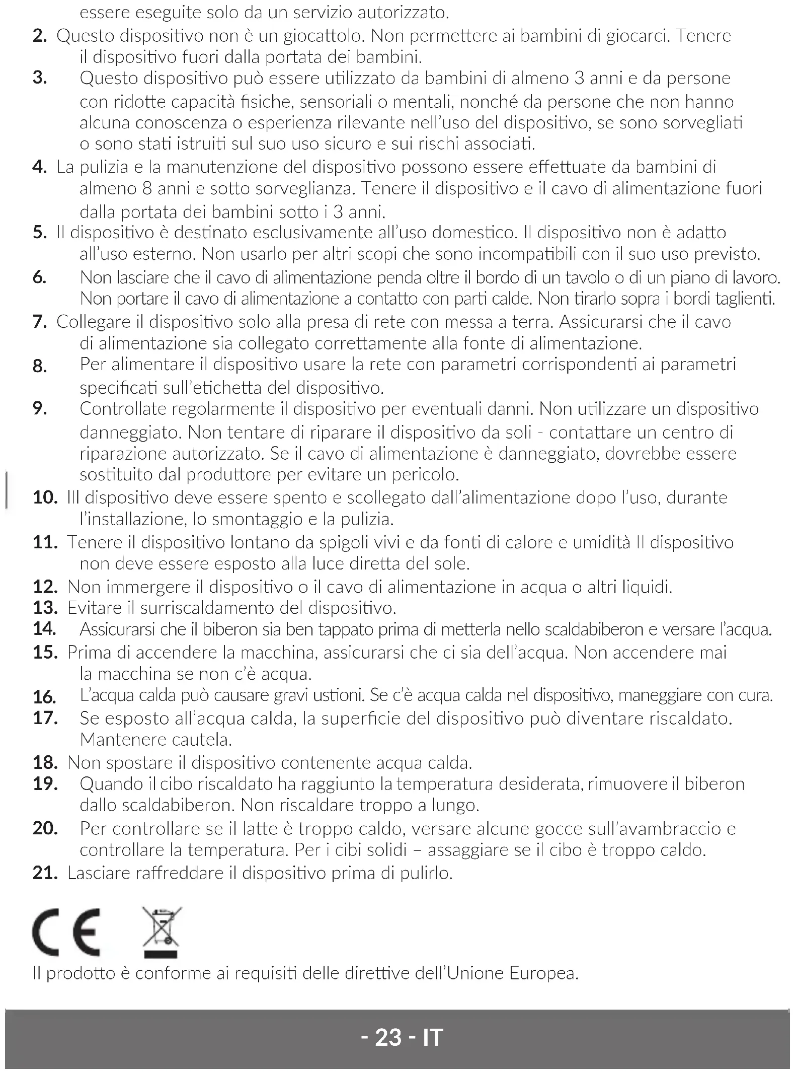 21. Lasciare rareddare il disposivo prima di pulirlo.