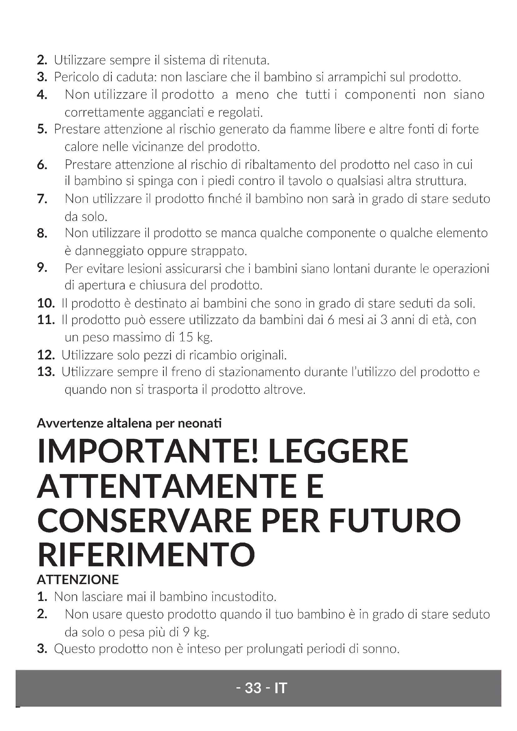 10. Il prodoo è desnato ai bambini che sono in grado di stare sedu da soli.