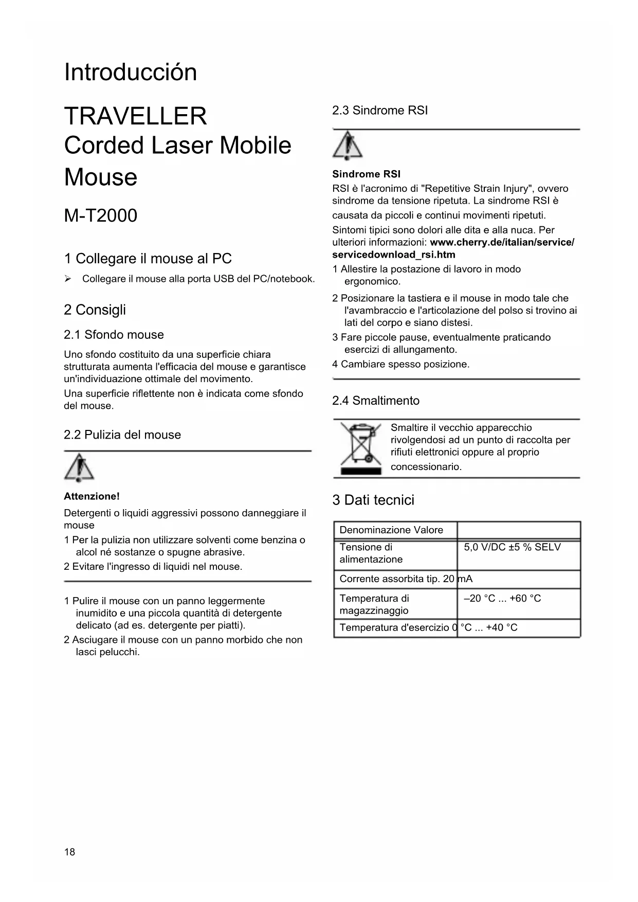 Scarica le istruzioni per il tuo Mouse per computer in formato PDF gratuitamente! Trova il tuo manuale TRAVELLER - Cherry e riprendi in mano il tuo dispositivo elettronico. In questa pagina sono pubblicati tutti i documenti necessari per l'utilizzo del tuo dispositivo. TRAVELLER del marchio Cherry.