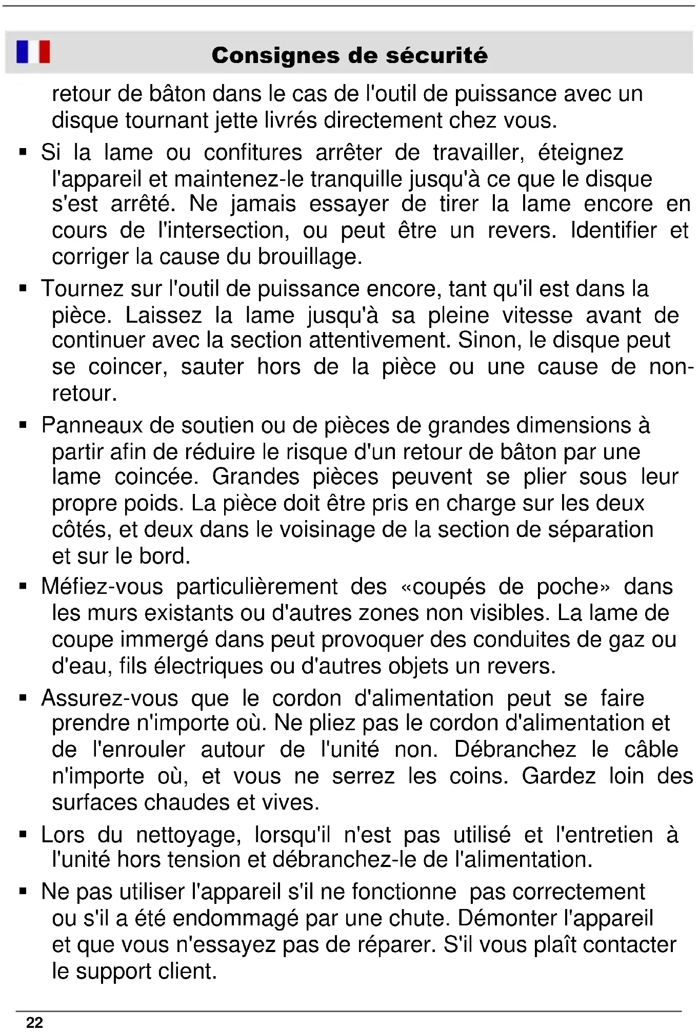 Si prega di notare in modo da evitare malfunzionamenti, danni e problemi di salute, le istruzioni allegate generali di sicurezza e le seguenti informazioni: Assicurarsi che la tensione di rete sia conforme alle specifiche sulla targhetta. La spina di allacciamento alla rete dell’elettroutensile deve essere adatta alla presa. Evitare assolutamente di apportare qualsivoglia modifica alla spina. Non utilizzare spine adattatrici con elettroutensili dotati di collegamento a terra. Le spine non modificate e le prese adatte allo scopo riducono il rischio di scosse elettriche. Persone con ridotte capacità fisiche, sensoriali o mentali non possono usare la smerigliatrice, a meno che non siano controllati da un supervisore / manager supervisionato e istruiti uno. La smerigliatrice angolare è usato come una levigatrice e la macchina da taglio. Seguire tutte, le istruzioni avvertenze, le illustrazioni e le informazioni che si ricevono con il dispositivo. Se non si seguono queste istruzioni, può provocare una scossa elettrica, incendio e / o lesioni gravi. La smerigliatrice angolare non è adatta a carta vetrata rettifica, lavorando con spazzole metalliche e lucidatura. Usi per i quali l'utensile non è destinato può causare pericoli o danni. Dischi abrasivi piegati a gomito devono essere montati in modo tale che la loro superficie abrasiva non sporga oltre il piano del bordo della cuffia di protezione. Un discoabrasivo montato in modo non corretto che sporge dal piano del bordo della cuffia di protezione non può essere schermato sufficientemente. Non impiegare lame per seghe a catena o lame per sega dentate. Questi utensili provocano spesso in contraccolpo o la24 perdita di controllo sull’elettroutensile.