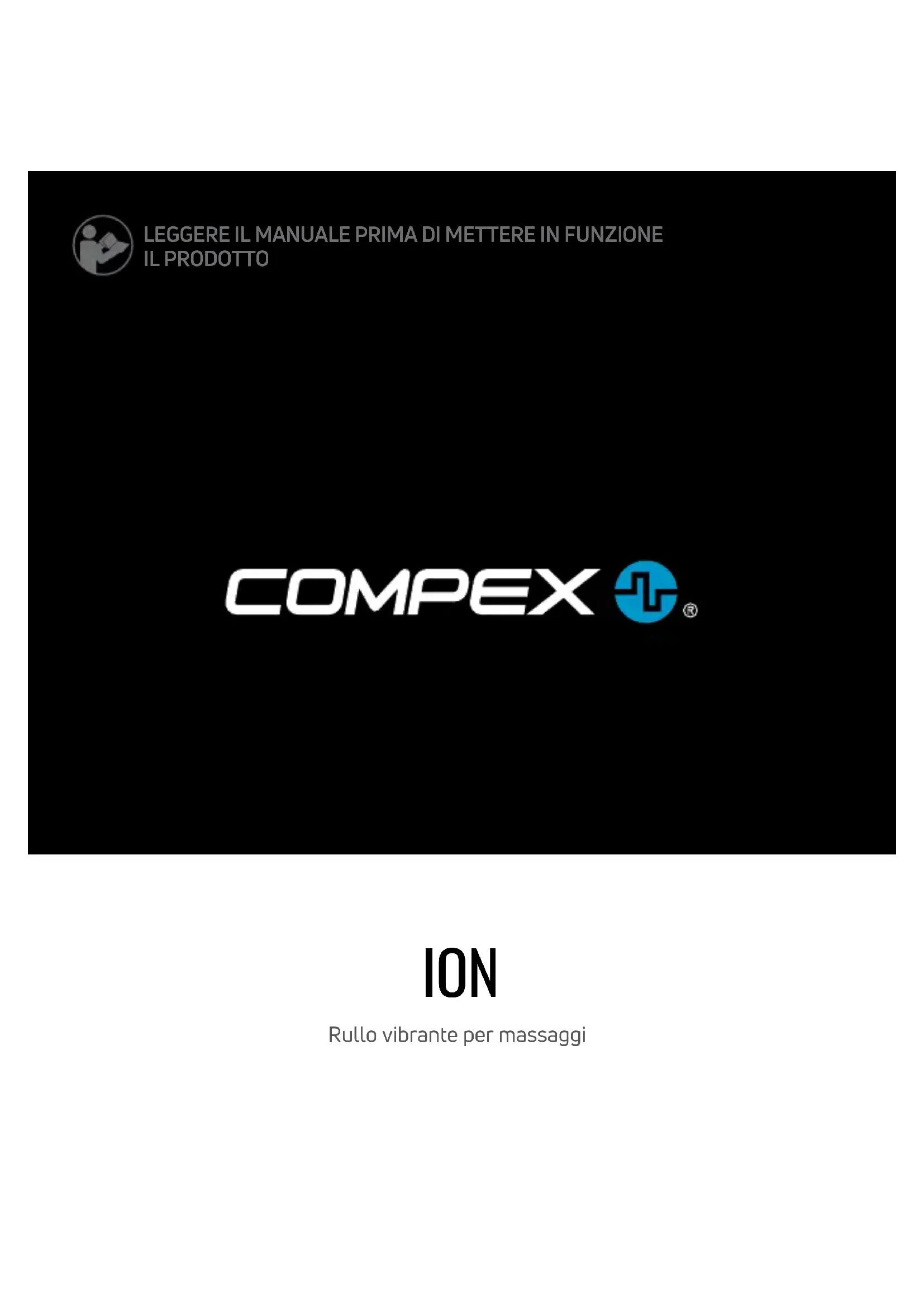 Scarica le istruzioni per il tuo Apparecchio per massaggi in formato PDF gratuitamente! Trova il tuo manuale Ion - COMPEX e riprendi in mano il tuo dispositivo elettronico. In questa pagina sono pubblicati tutti i documenti necessari per l'utilizzo del tuo dispositivo. Ion del marchio COMPEX.