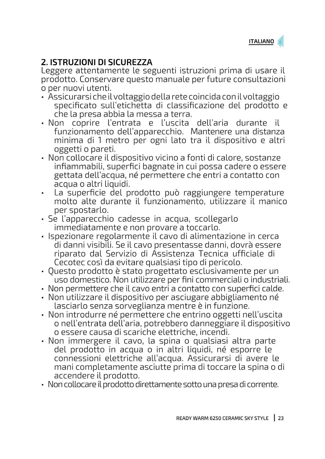 MANUALE UTENTE Ready Warm 6200 Ceramic Sky CECOTEC