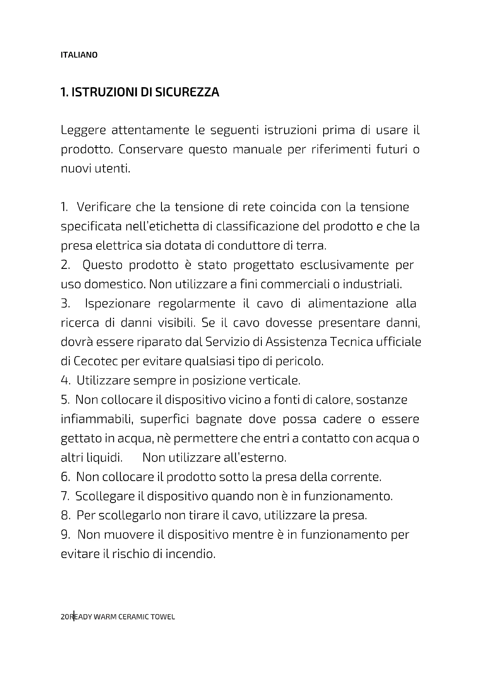 MANUALE UTENTE Ready Warm 6050 Ceramic Pisa CECOTEC
