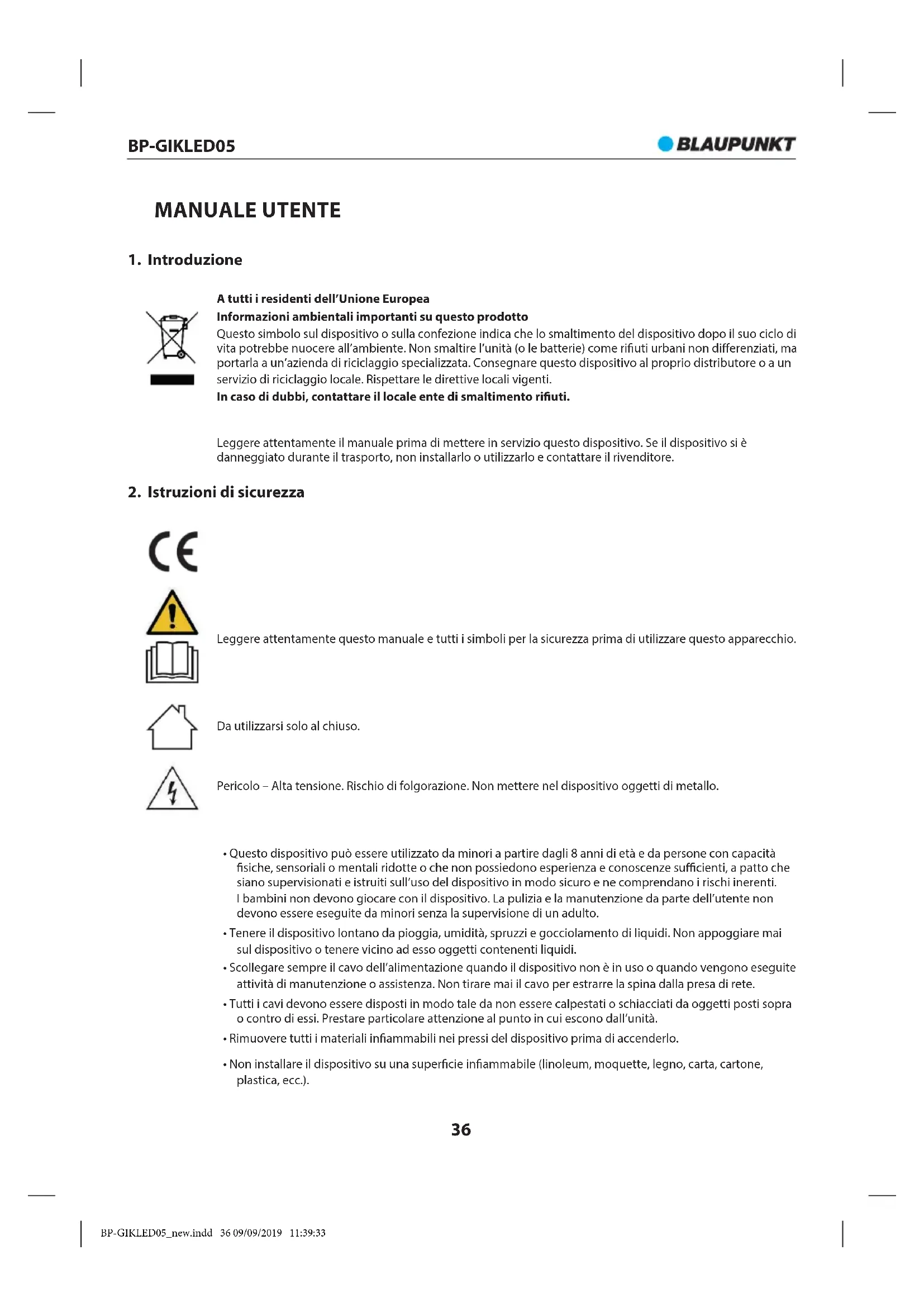 - Conservare questo manuale per eventuali riferimenti futuri. BP-GIKLED05_new.indd 37 09/09/2019 11:39:33BP-GIKLED05