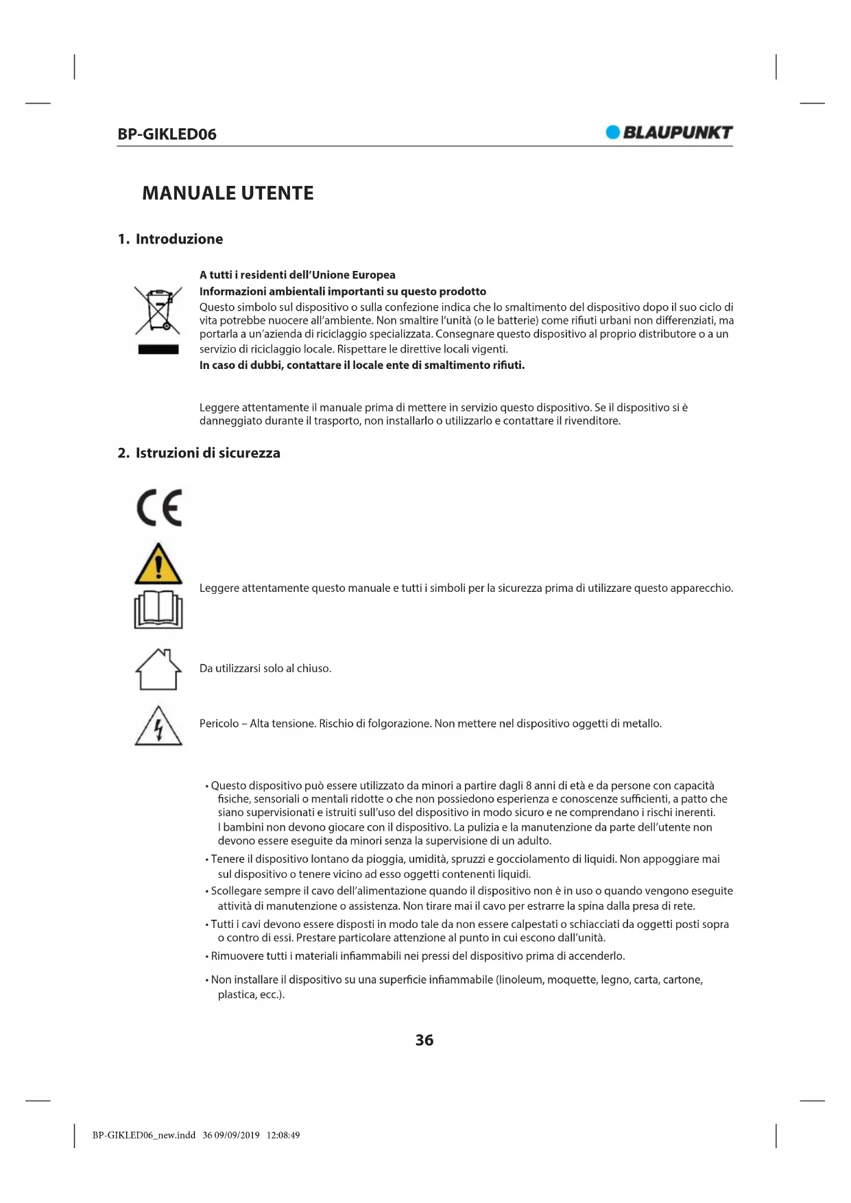 MANUALE UTENTE BPGIKLED06 BLAUPUNKT