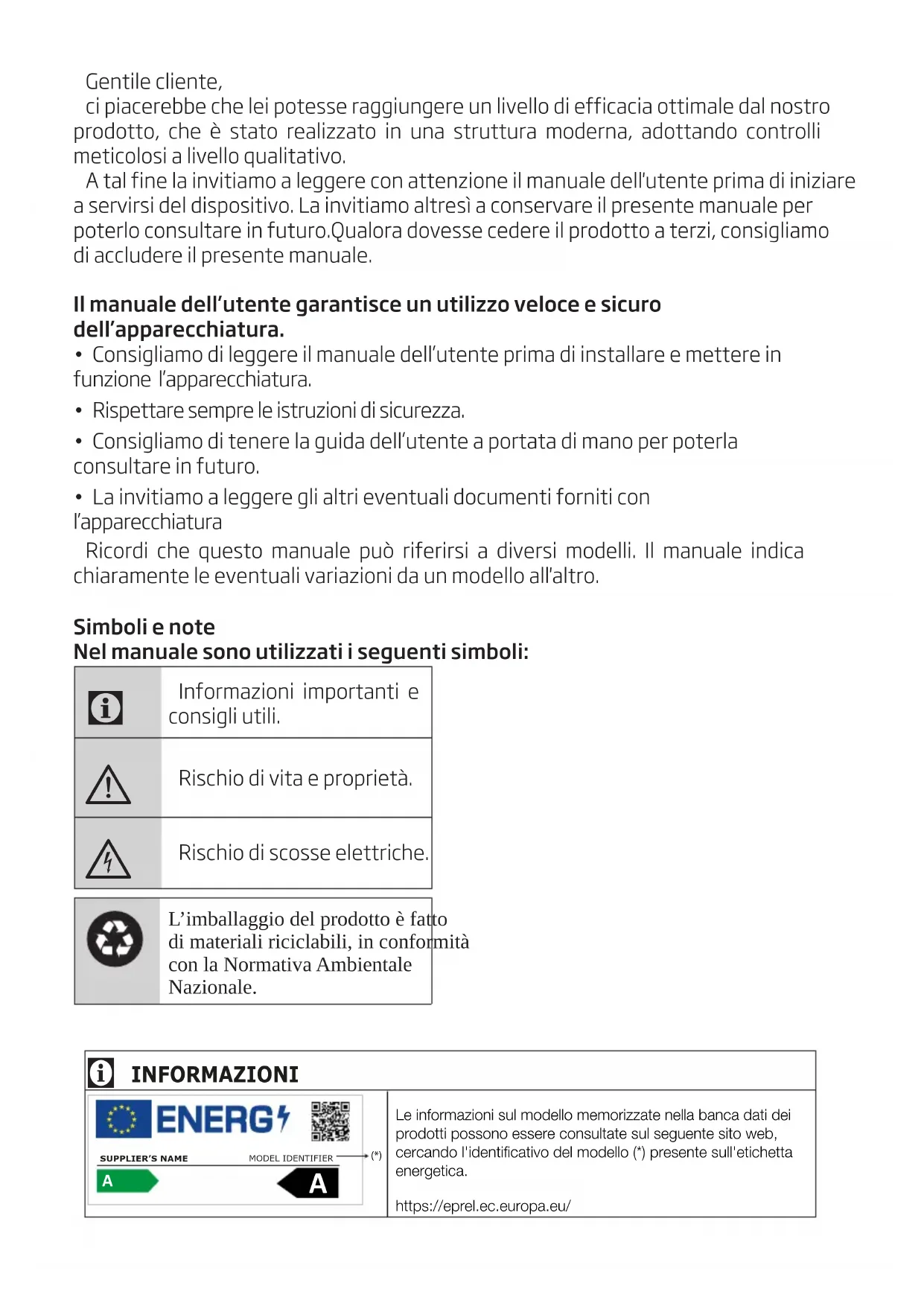 - Consigliamo di leggere il manuale dell’utente prima di installare e mettere in funzione l’apparecchiatura.