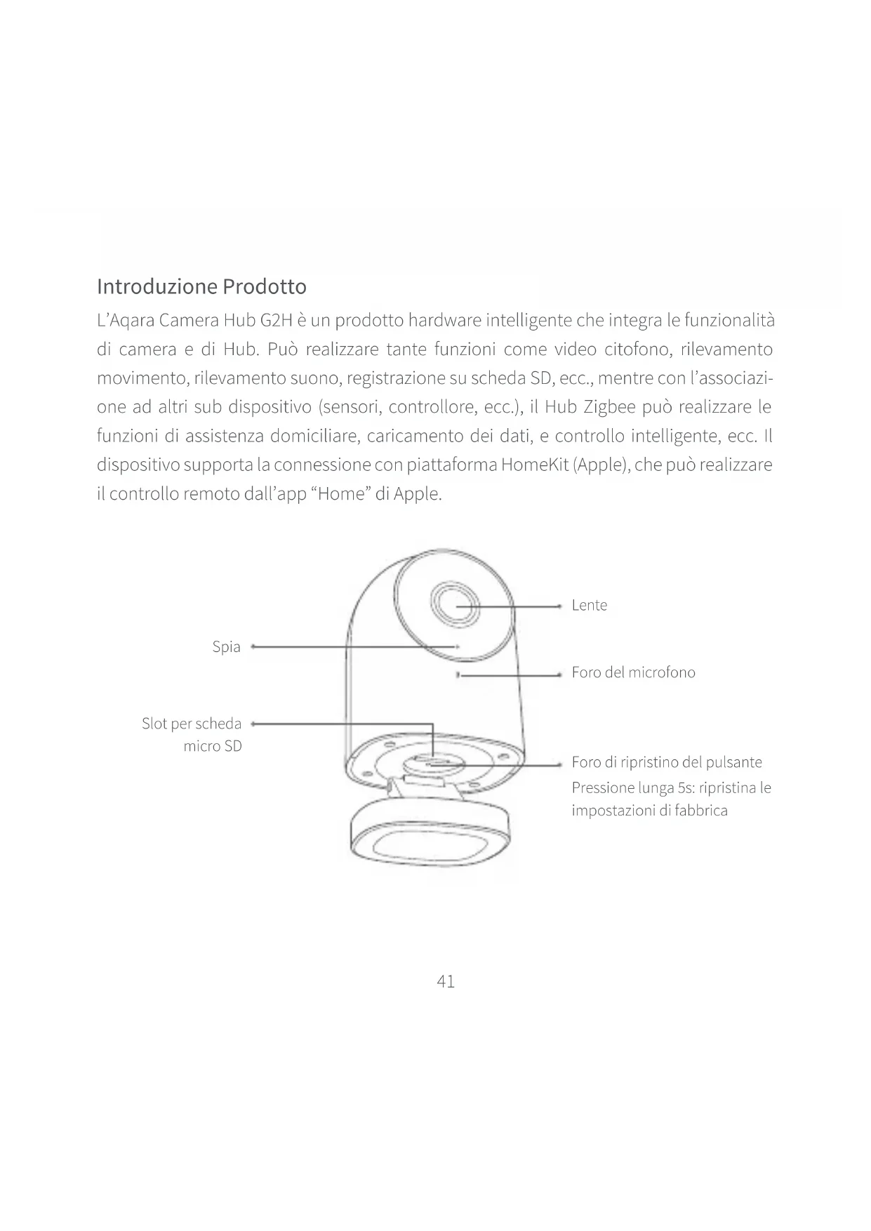 Scarica le istruzioni per il tuo Telecamera di sorveglianza in formato PDF gratuitamente! Trova il tuo manuale Camera Hub G2H - Aqara e riprendi in mano il tuo dispositivo elettronico. In questa pagina sono pubblicati tutti i documenti necessari per l'utilizzo del tuo dispositivo. Camera Hub G2H del marchio Aqara.