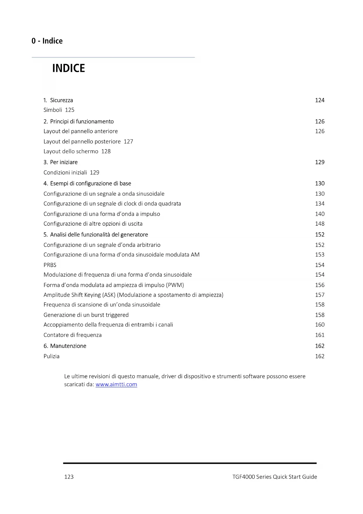 Pulizia 162 Le ultime revisioni di questo manuale, driver di dispositivo e strumenti software possono essere scaricati da: www.aimtti.com1 - Sicurezza