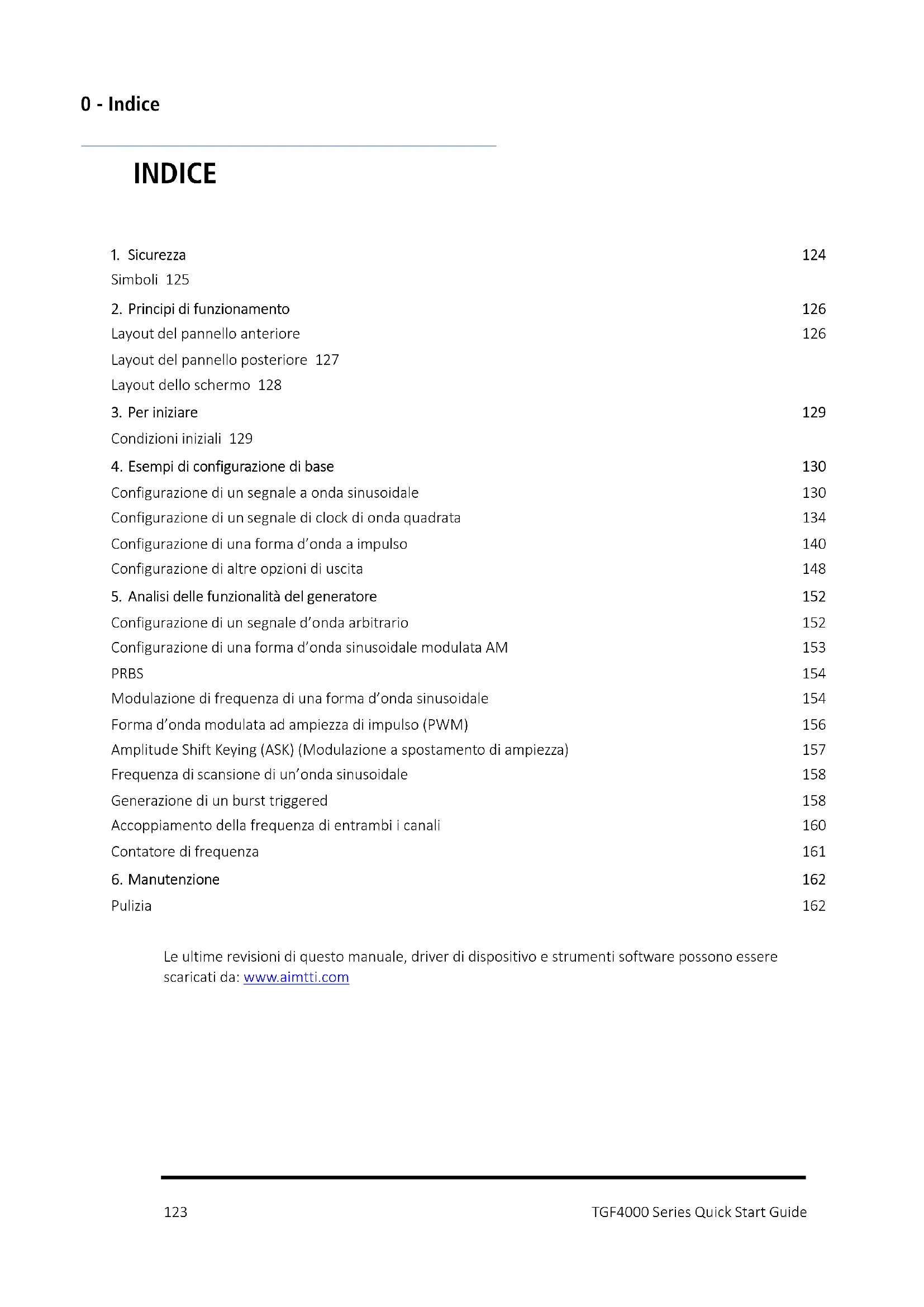 Pulizia 162 Le ultime revisioni di questo manuale, driver di dispositivo e strumenti software possono essere scaricati da: www.aimtti.com1 - Sicurezza
