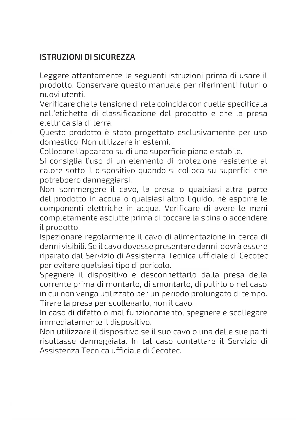 Questo prodotto ha una garanzia di 2 anni a partire dalla data di acquisto, sempre e quando viene conservata e inviata la fattura di acquisto, il prodotto stia in perfetto stato fisico e si utilizzi in modo adeguato così come indicato nel manuale di istruzioni. La garanzia non coprirà: Se il prodotto è stato utilizzato al di fuori della sua capacità o di utilizzo, maltrattato, colpito, esposto ad umidità, sommerso da qualche liquido o sostanza corrosiva, così come qualsiasi altra mancanza attribuibile al consumatore. Se il prodotto è stato smontato, modificato o riparato da persone non autorizzate dal SAT ufficiale di Cecotec. Se il problema è stato generato da un’usura normale dei pezzi dovuta all’uso. Il servizio di garanzia copre tutti i difetti di fabbricazione per 2 anni secondo la legislazione in vigore, ad eccezione dei pezzi consumabili. Nel caso di cattivo uso da parte dell’utente, il servizio di garanzia non si farà responsabile della riparazione. Qualora ci fosse un problema con il prodotto o avere una consulenza, contattare il Servizio di Assistenza Tecnica ufficiale di Cecotec attraverso il numero di telefono +34 96 321 07 28. 03093_03094_03095_03096_Tasty&Grill 2000 Inox_Stone_MixStone_LineStone_Manual_YV_01200728.indd 4303093_03094_03095_03096_Tasty&Grill 2000 Inox_Stone_MixStone_LineStone_Manual_YV_01200728.indd 43 28/7/20 13:3328/7/20 13:33TASTY&GRILL 2000 INOX / INOX STONE / INOX MIXSTONE / INOX LINESTONE