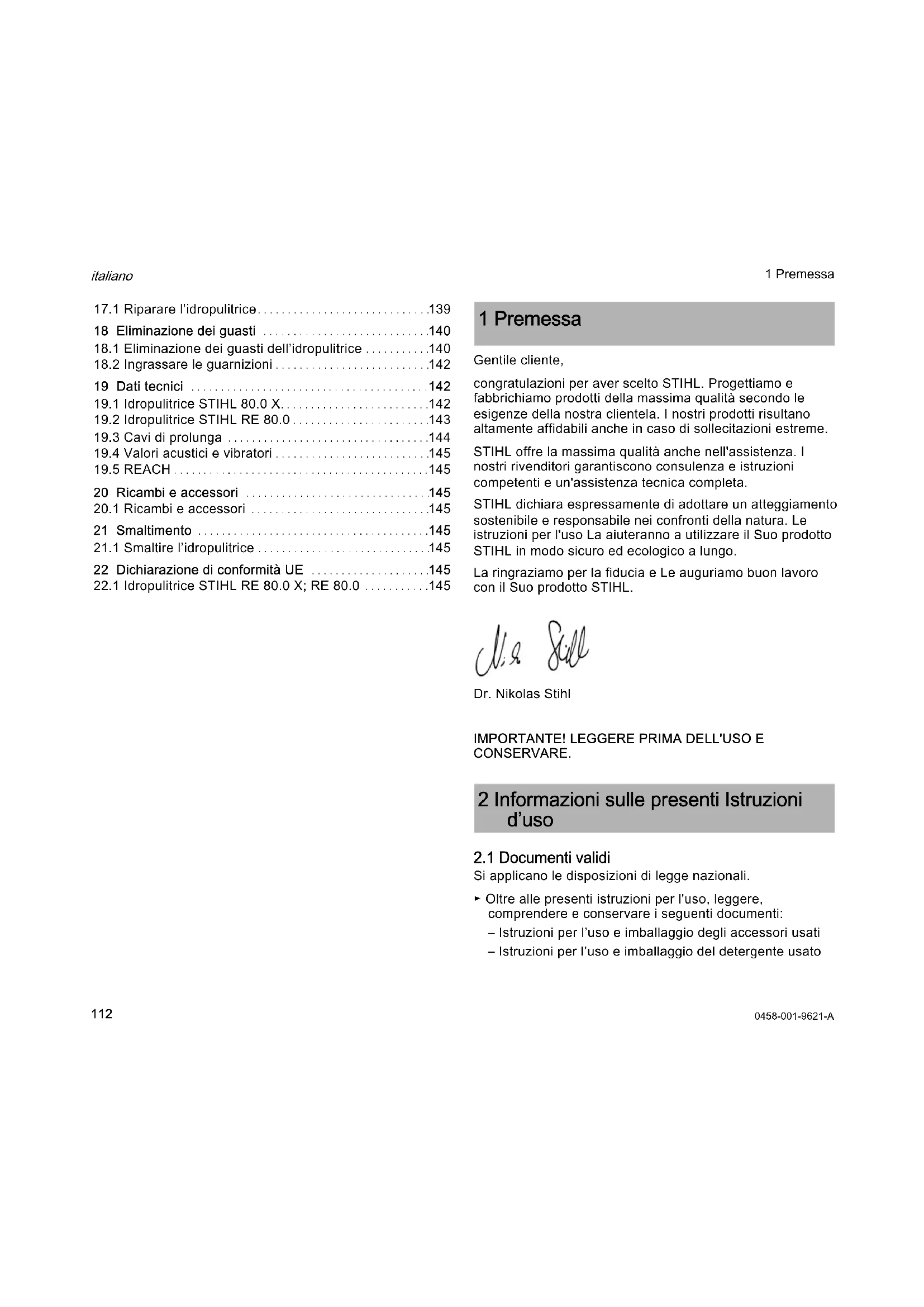 1 Premessa 2 Informazioni sulle presenti Istruzioni d’uso0458-001-9621-A