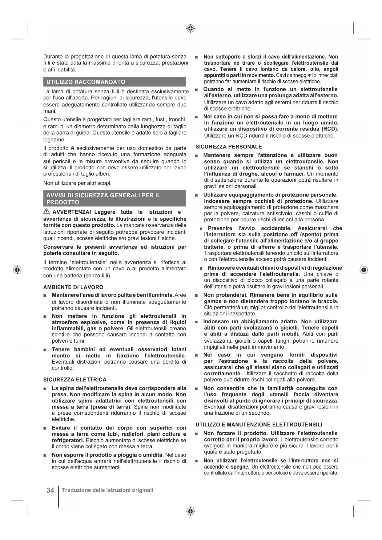 Traduzione delle istruzioni originali