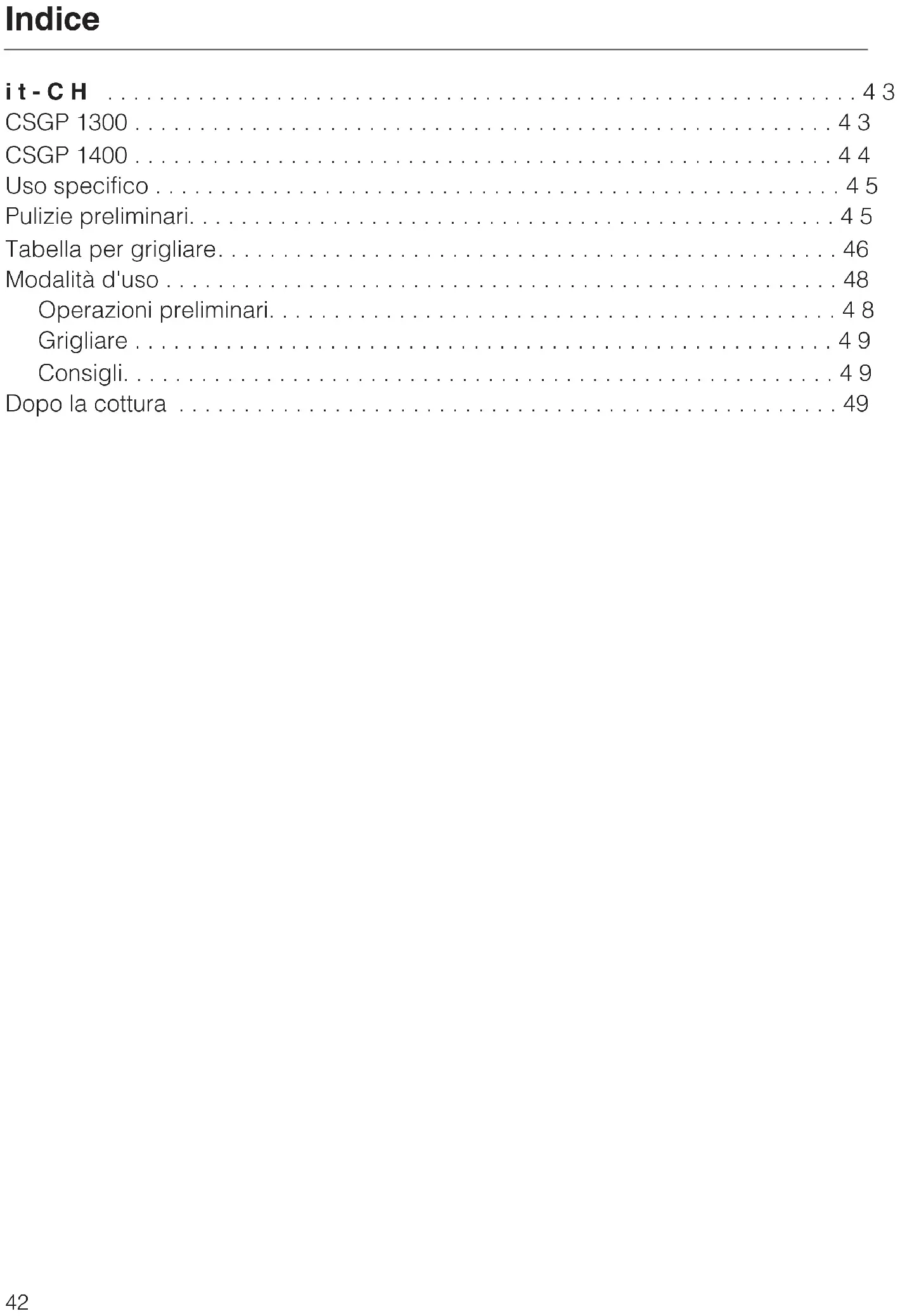Scarica le istruzioni per il tuo Cucina in formato PDF gratuitamente! Trova il tuo manuale CSGP 1300 - MIELE e riprendi in mano il tuo dispositivo elettronico. In questa pagina sono pubblicati tutti i documenti necessari per l'utilizzo del tuo dispositivo. CSGP 1300 del marchio MIELE.