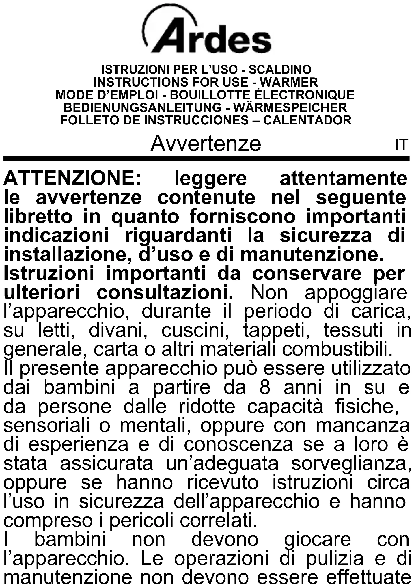 ARTK75 - Scaldavivande ARDES - Manuale utente e istruzioni gratuiti