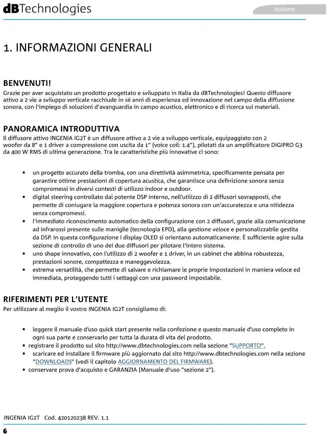 Ingenia IG2T - Altoparlante DB Technologies - Manuale utente e istruzioni gratuiti
