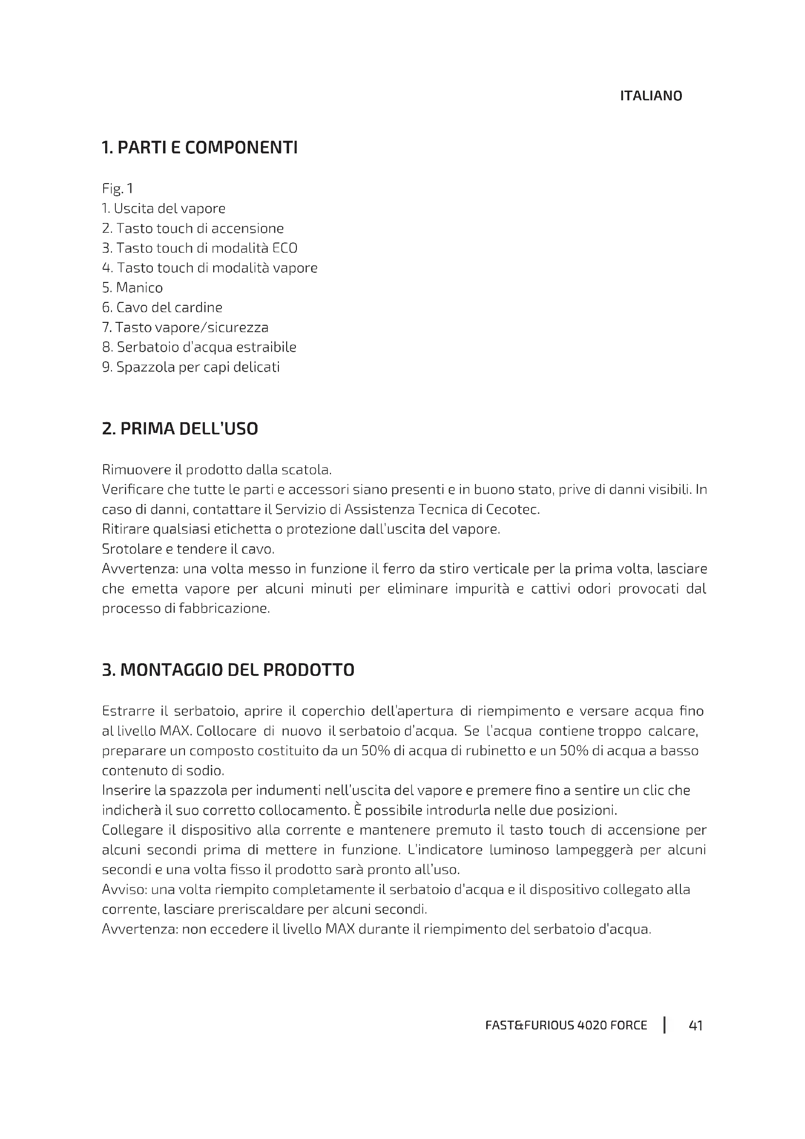 Fast&Furious 4020 Force - Pulitore a vapore CECOTEC - Manuale utente e istruzioni gratuiti