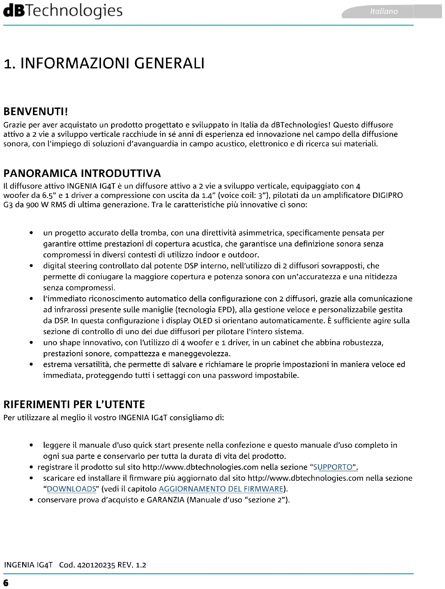Ingenia IG4T - Altoparlante DB Technologies - Manuale utente e istruzioni gratuiti