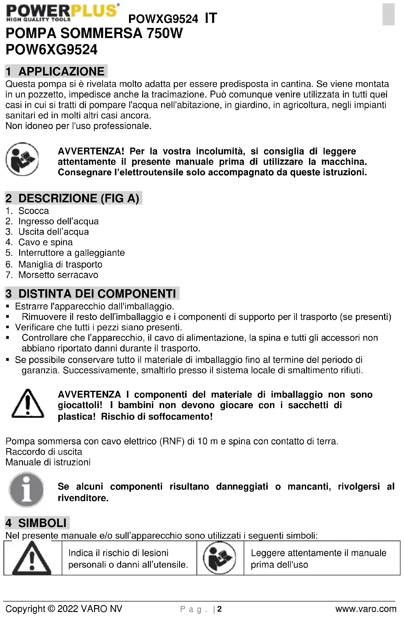 Leggere attentamente il manuale prima dell'usoPOWXG9524 IT Copyright © 2022 VARO NV P a g . | 3 www.varo.com