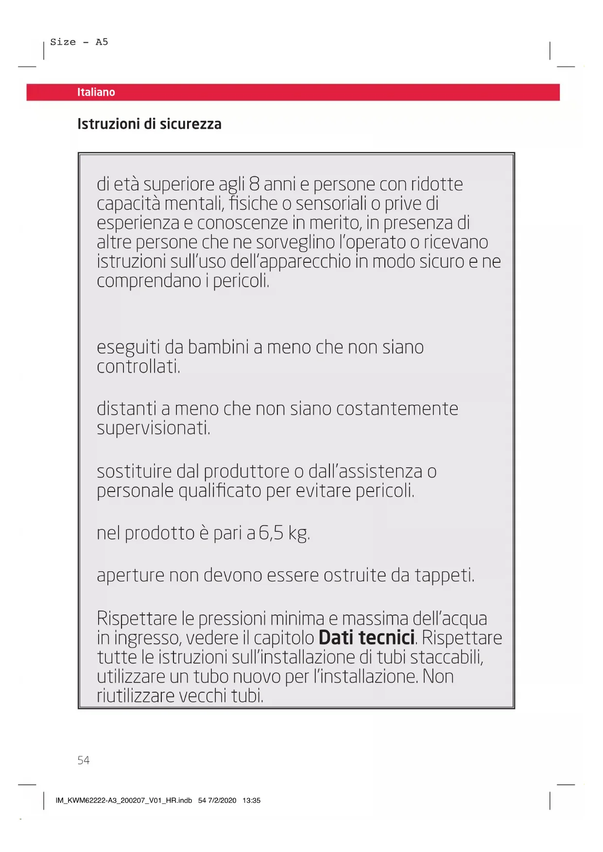 Istruzioni di sicurezza Size - A5