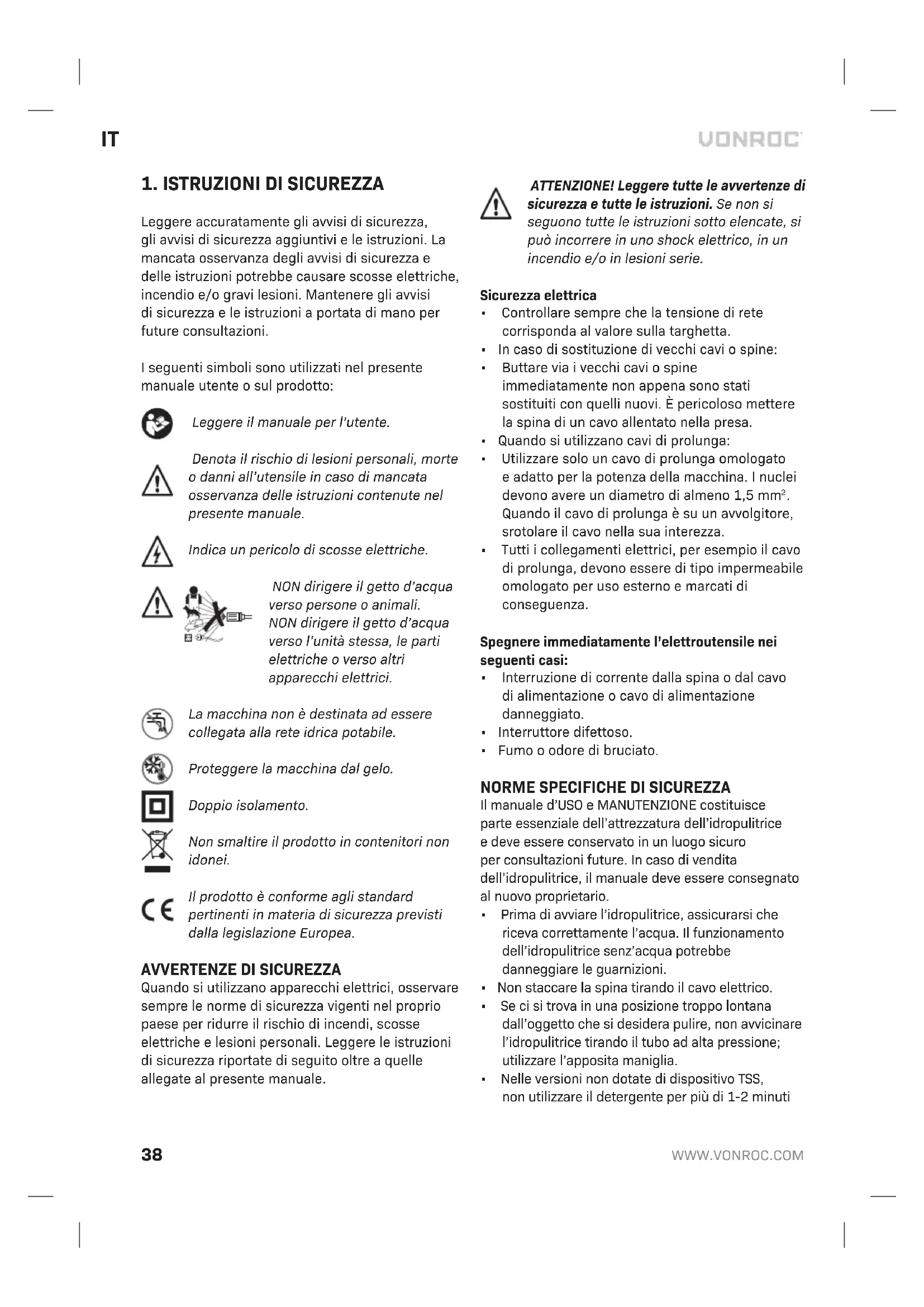 PW501AC - Idropulitrice Vonroc - Manuale utente e istruzioni gratuiti