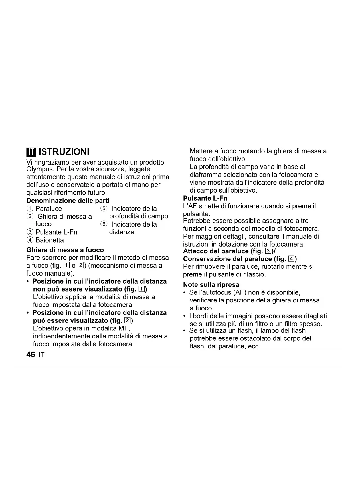 MANUALE UTENTE ED 45mm F1.2 PRO OLYMPUS