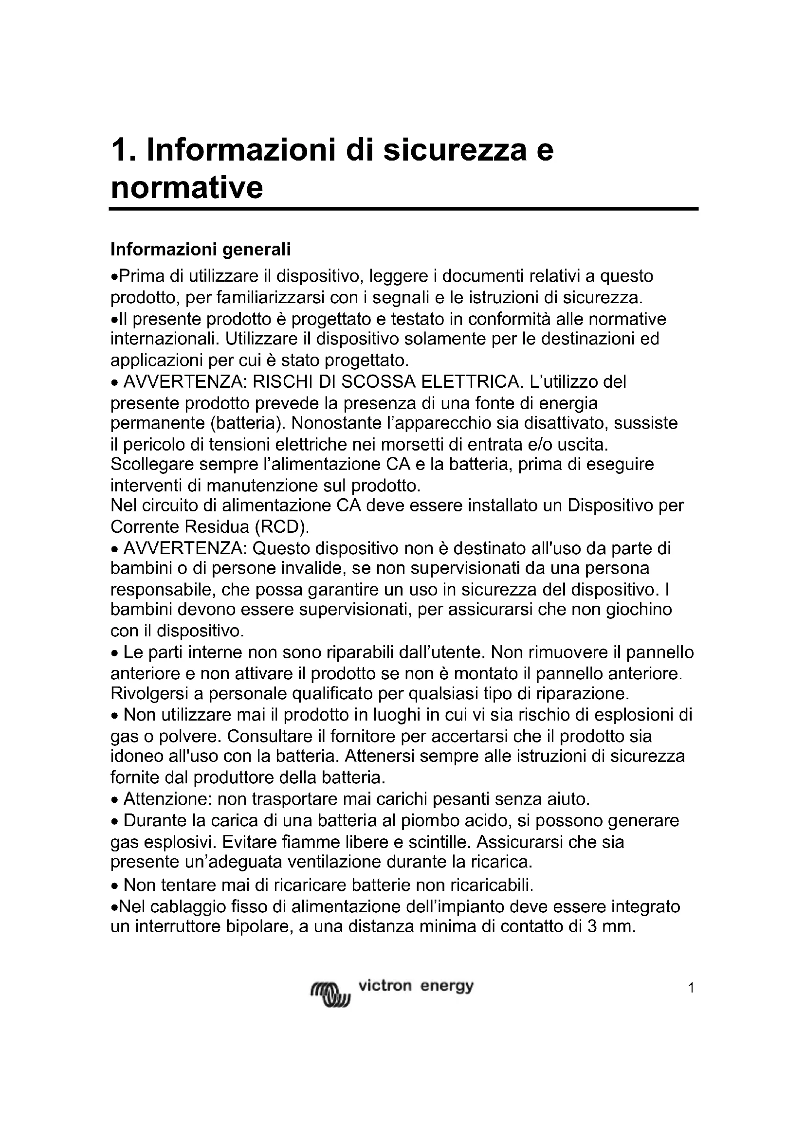 1. Informazioni di sicurezza e