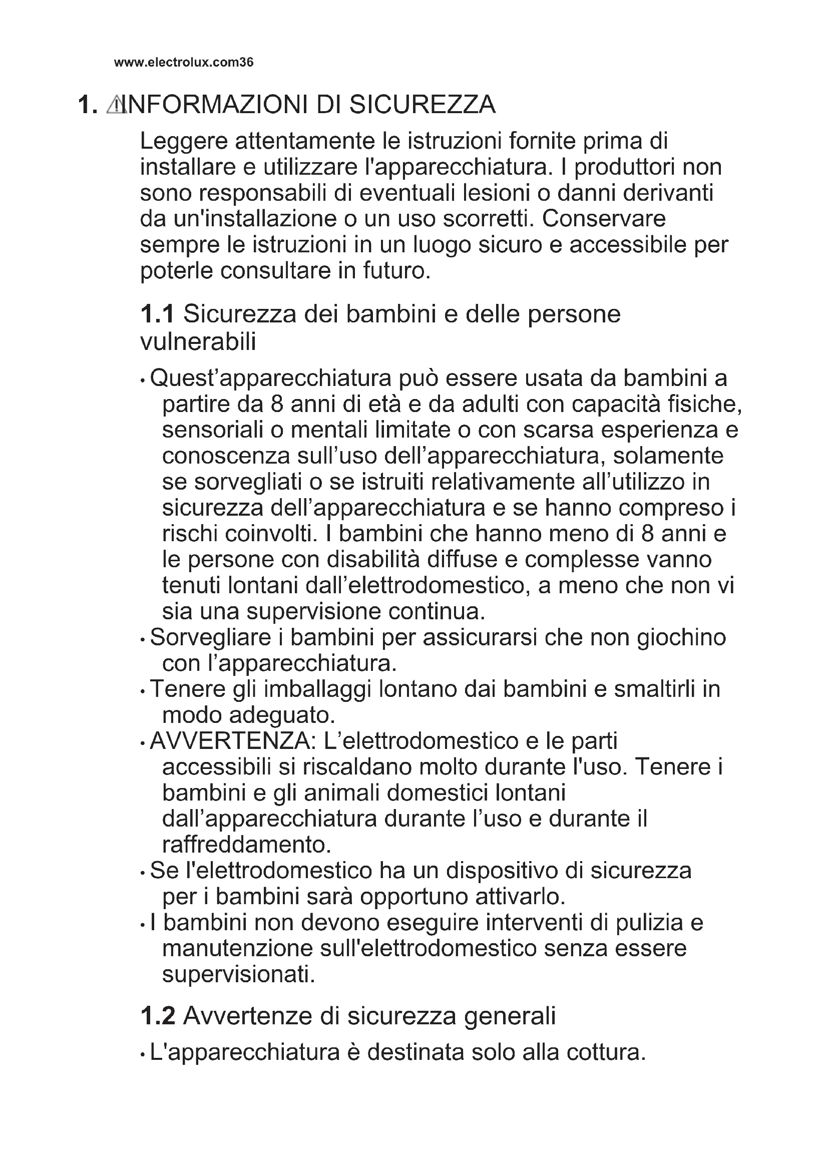 1.2 Avvertenze di sicurezza generali