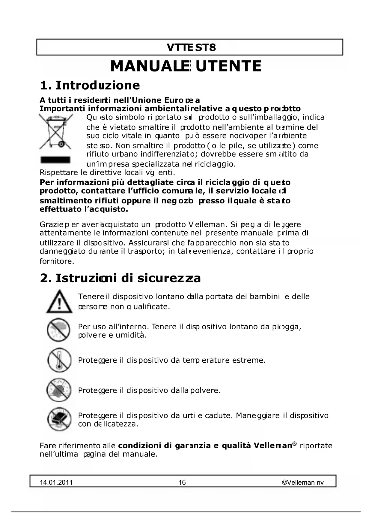 MANUALE UTENTE VTTEST8 VELLEMAN