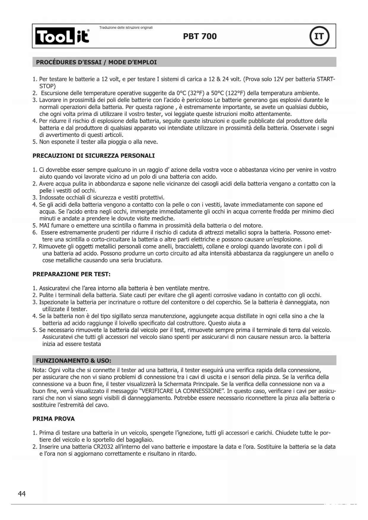 MANUALE UTENTE Tool It PBT 700 GYS