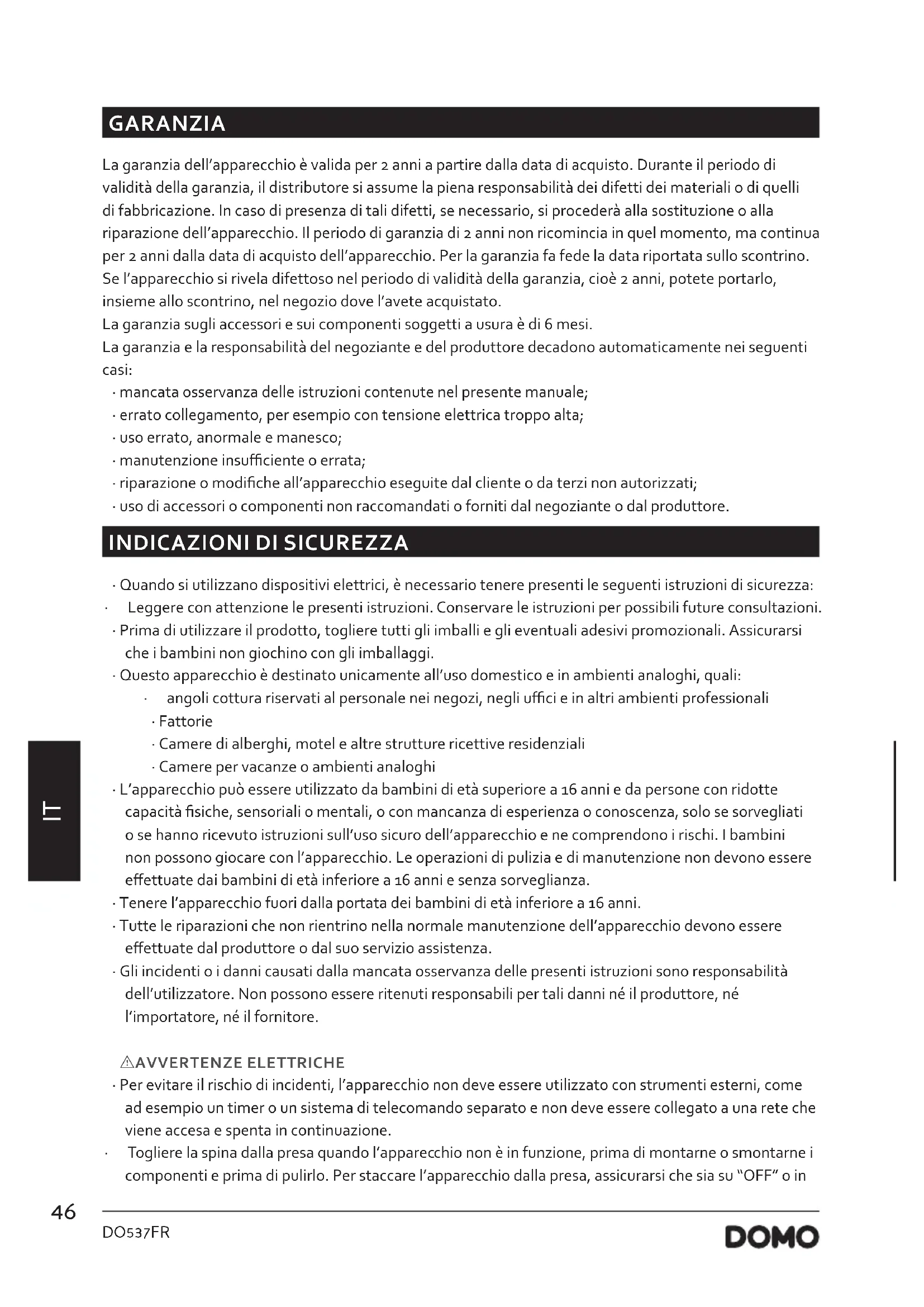 Trova gratuitamente il manuale del dispositivo DO537FR DOMO in formato PDF.