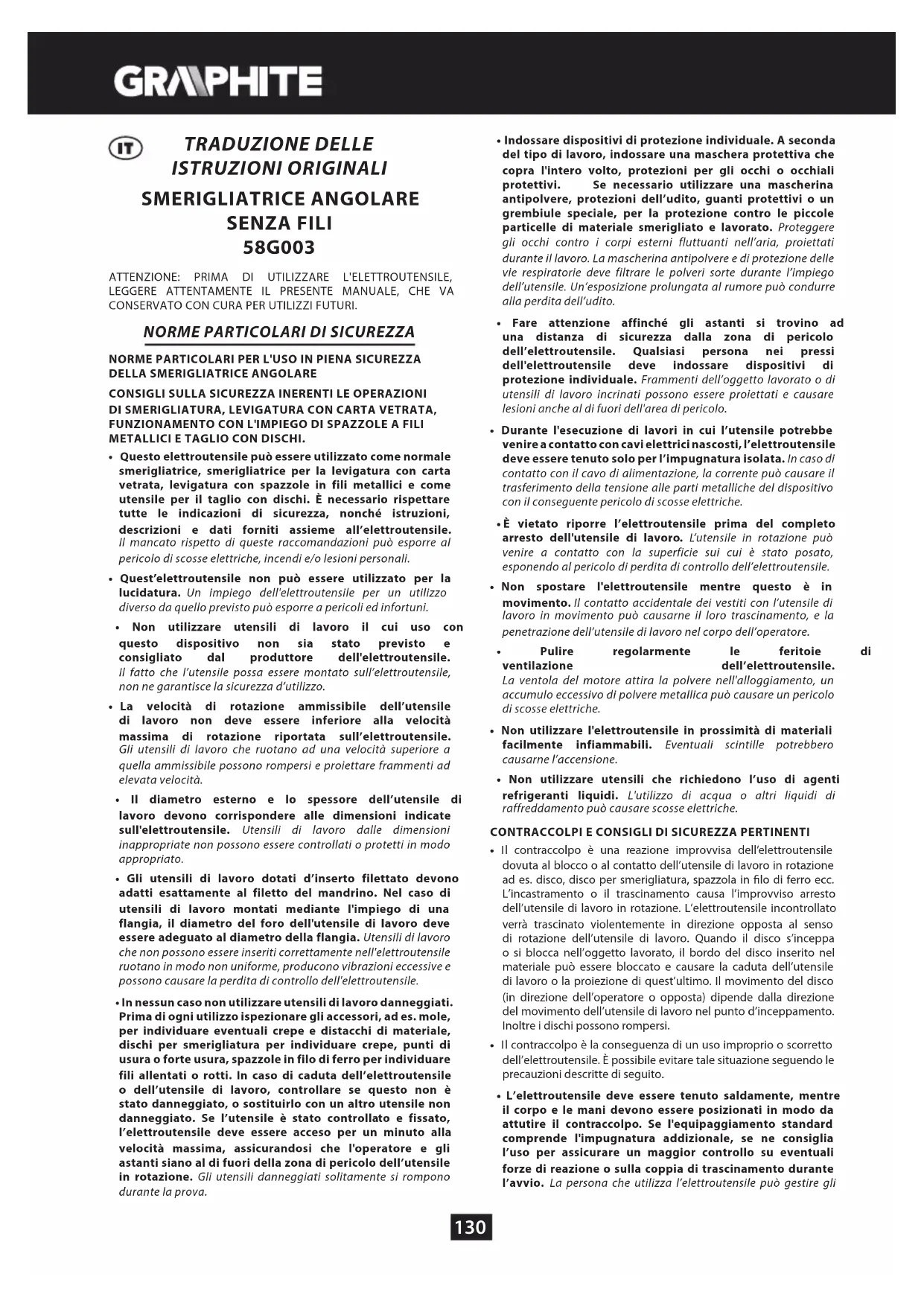 MANUALE UTENTE 58G003 Graphite