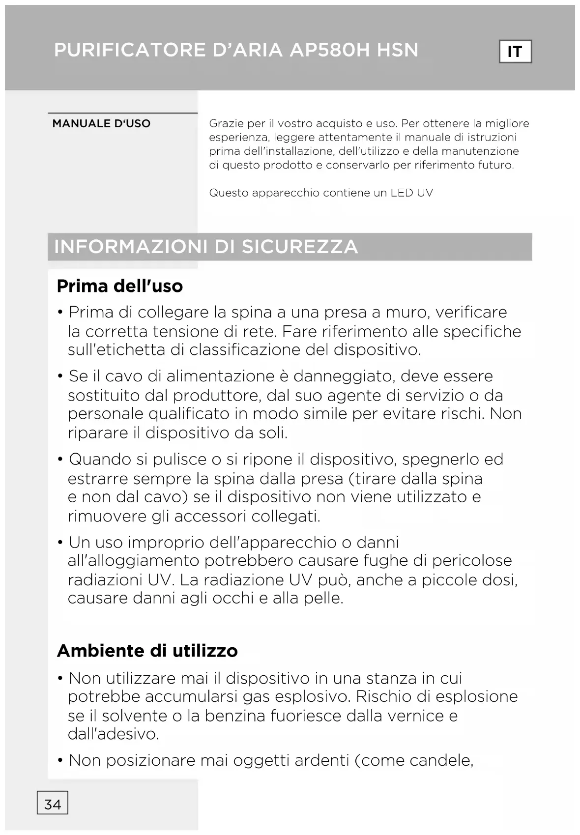 MANUALE UTENTE AP580H HISENSE