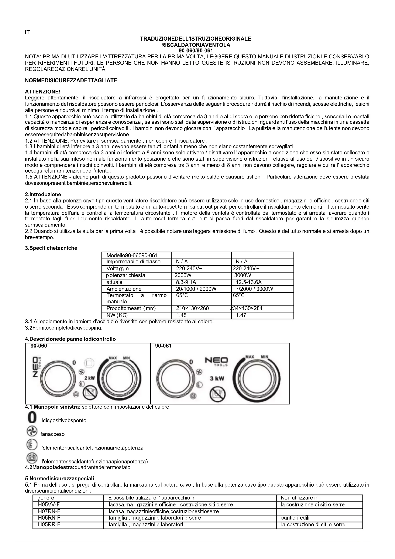Scarica le istruzioni per il tuo Riscaldamento in formato PDF gratuitamente! Trova il tuo manuale 90061 - NEO e riprendi in mano il tuo dispositivo elettronico. In questa pagina sono pubblicati tutti i documenti necessari per l'utilizzo del tuo dispositivo. 90061 del marchio NEO.