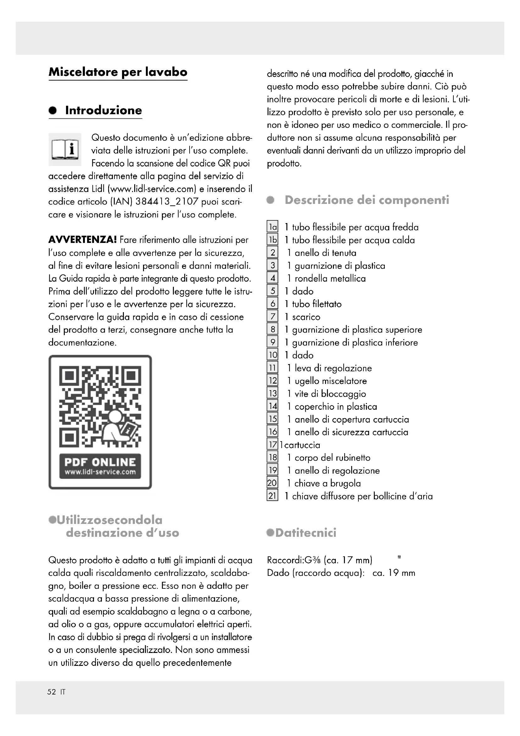 IAN 384413 - Rubinetto Livarno Lux - Manuale utente e istruzioni gratuiti