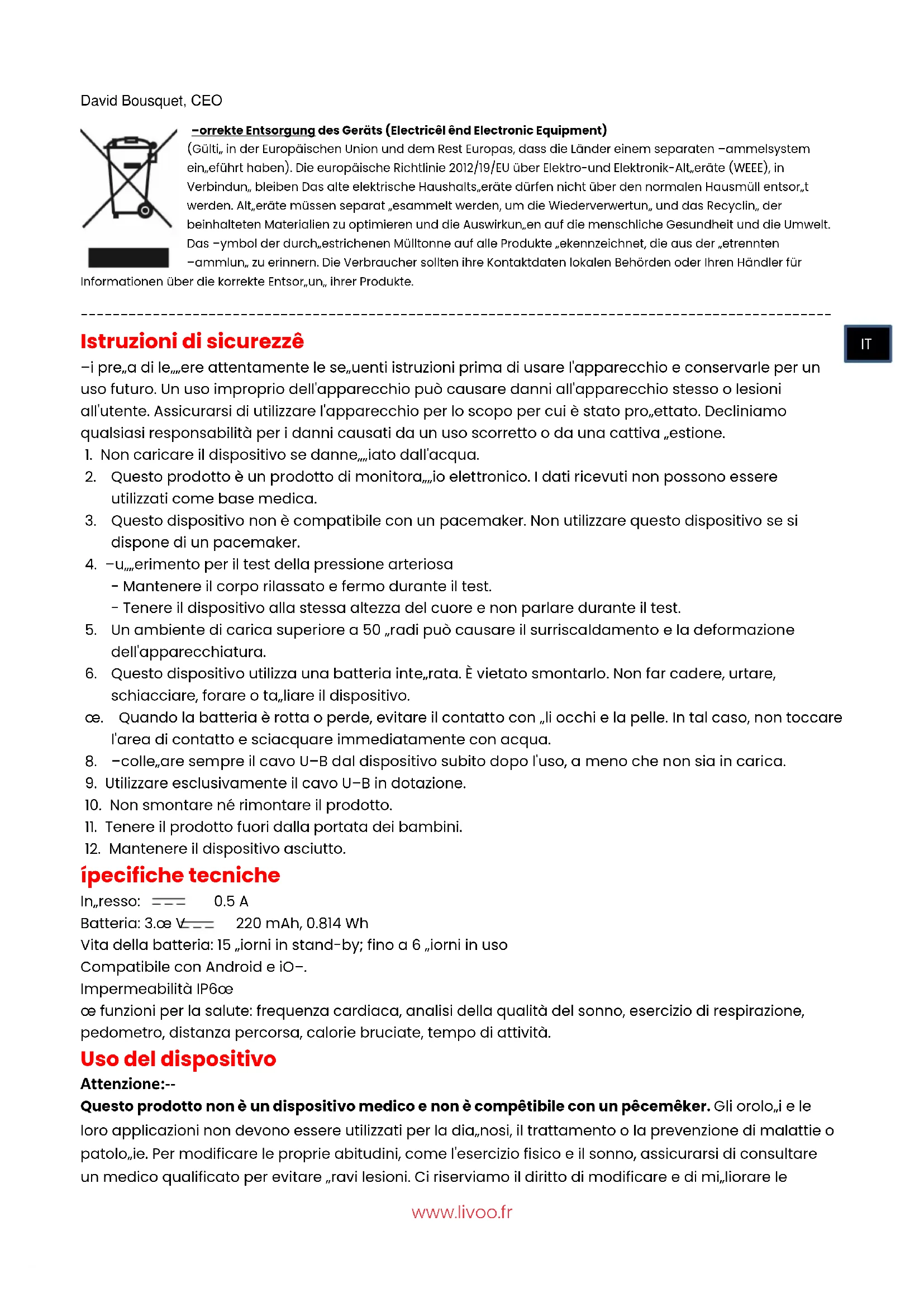 Trova gratuitamente il manuale del dispositivo TEC620 LIVOO in formato PDF.