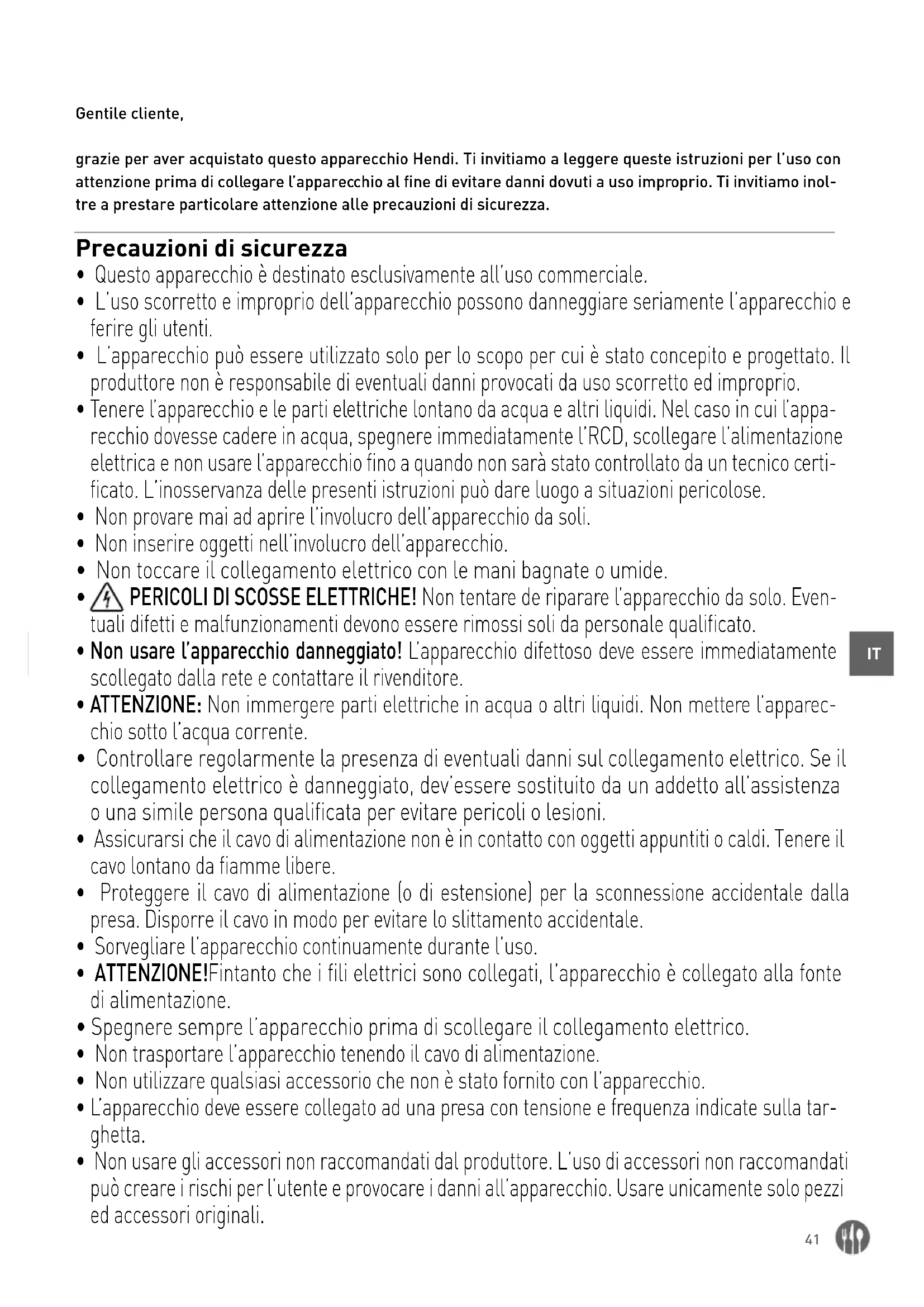 - Questo apparecchio è destinato esclusivamente all’uso commerciale.
