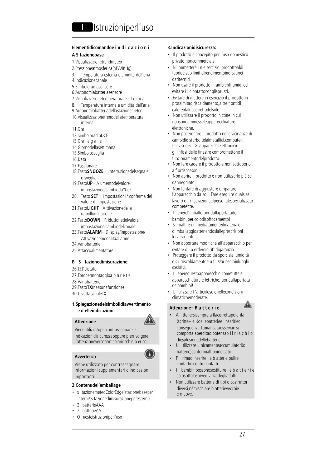 - Utilizzarel’articolo solo nelle condizioni climatiche moderate. Attenzione –Batterie