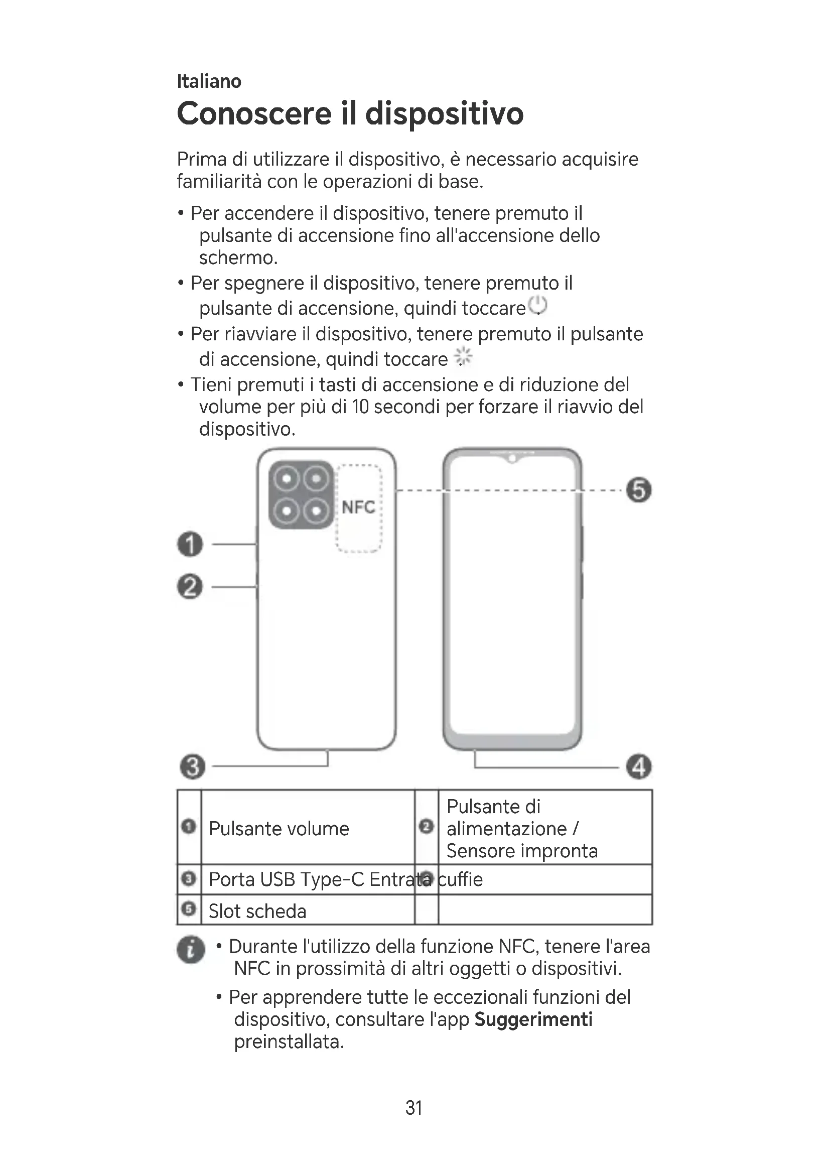 - Per apprendere tutte le eccezionali funzioni del dispositivo, consultare l'app Suggerimenti preinstallata. 31Introduzione