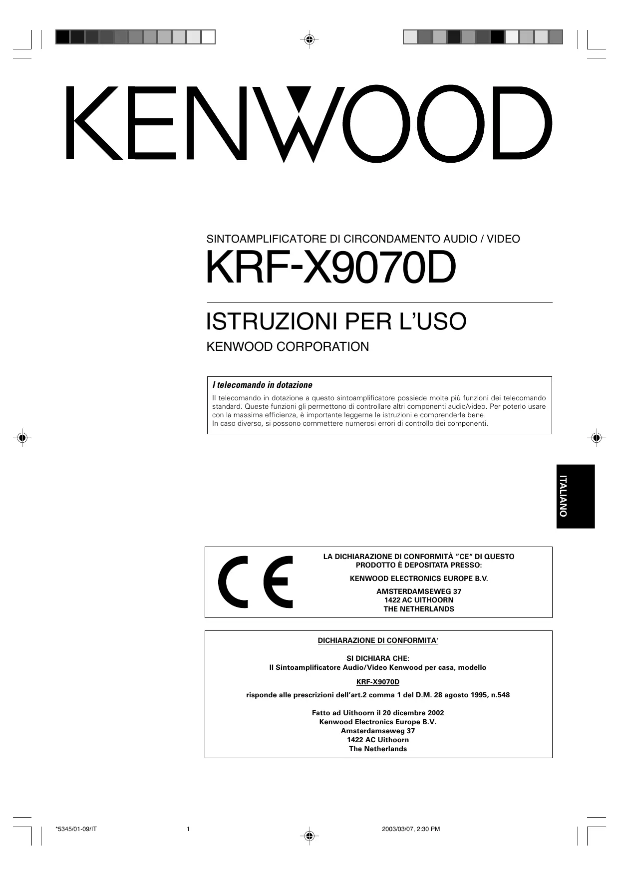 KRF-X9070D - Ricevitore audio/video KENWOOD - Manuale utente e istruzioni gratuiti