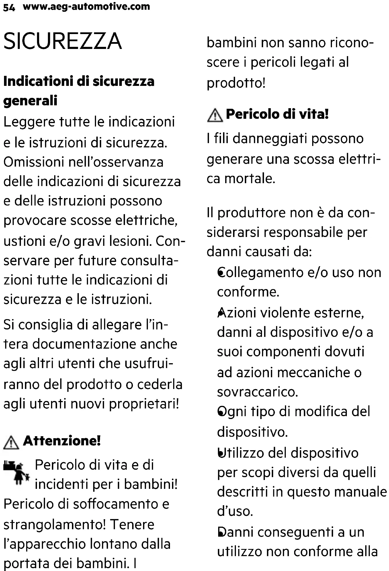 Istruzioni per l’uso Consegnare la documentazione com- pleta agli altri utenti!www.aeg-automotive.com