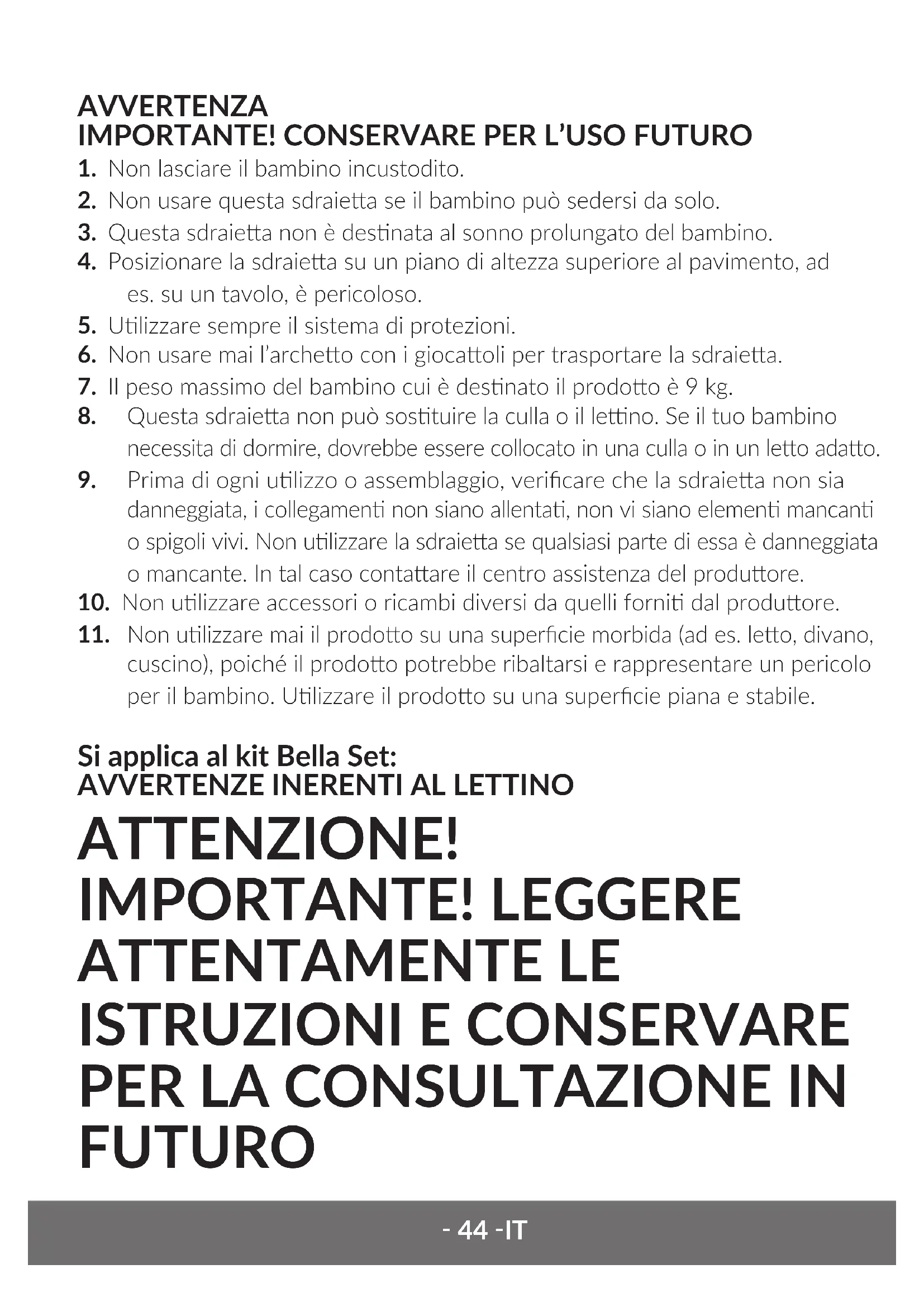 2. Non usare questa sdraiea se il bambino può sedersi da solo.