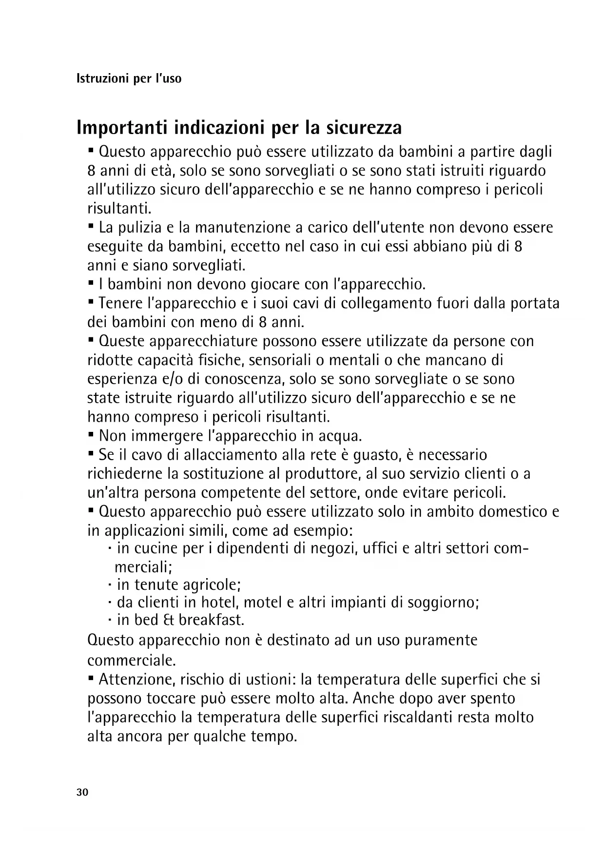 - Questo apparecchio può essere utilizzato da bambini a partire dagli 8 anni di età, solo se sono sorvegliati o se sono stati istruiti riguardo all’utilizzo sicuro dell’apparecchio e se ne hanno compreso i pericoli risultanti.